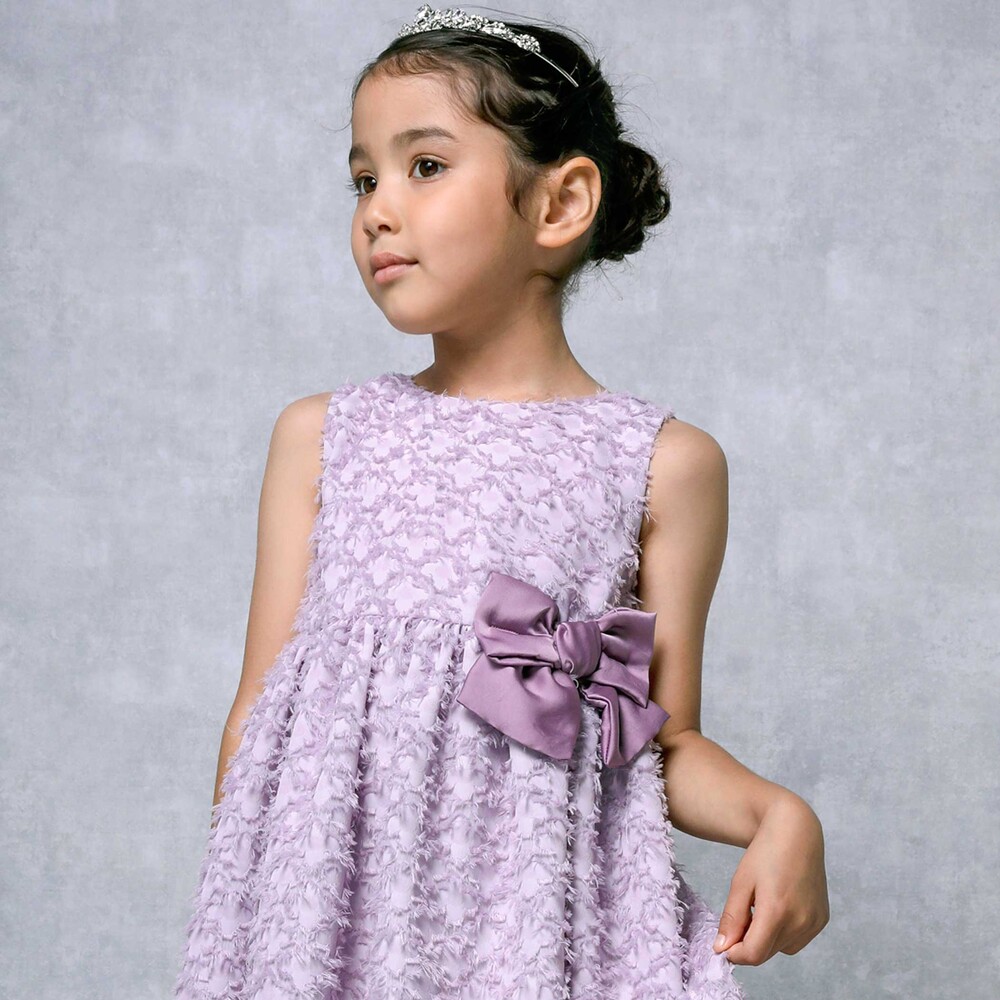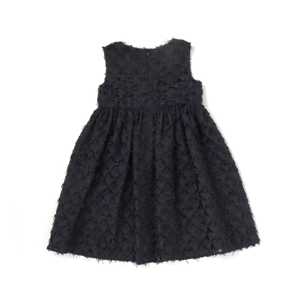 シャギージャガード素材を使用した、華やかな高めウエストのドレス。