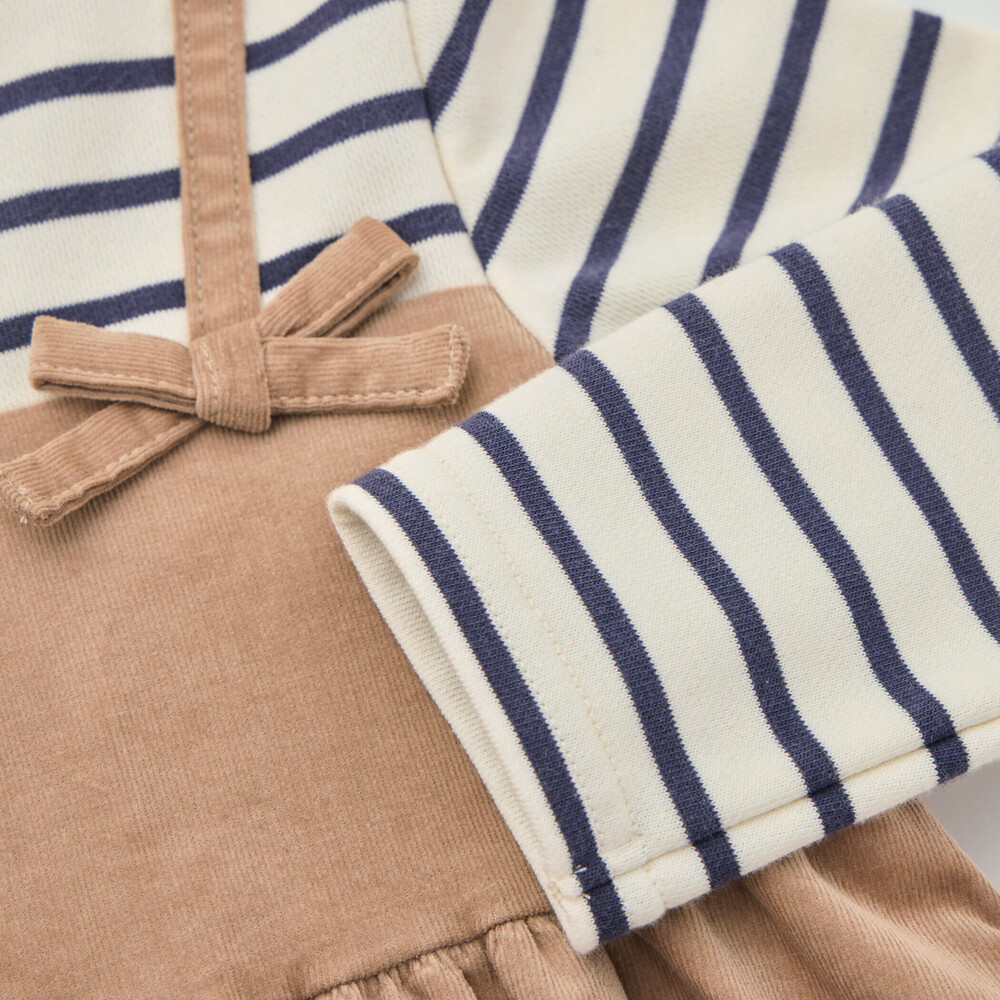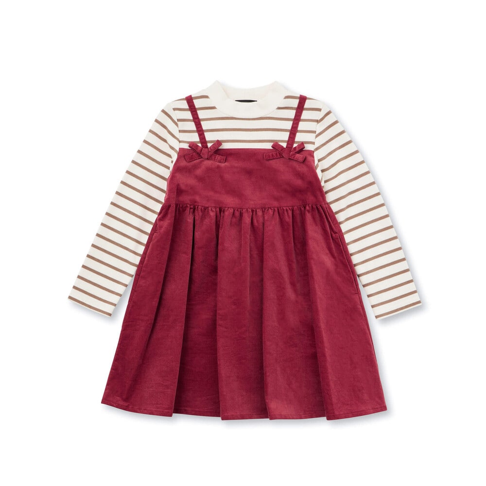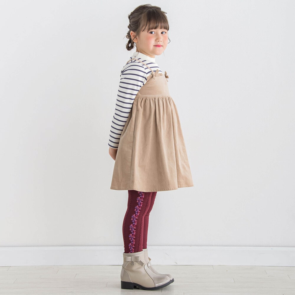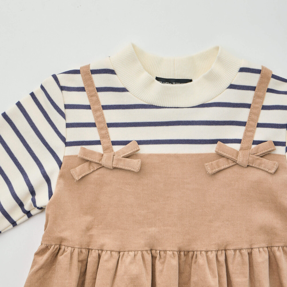 ボーダーハイネックドッキングコーデュロイワンピース(80~150cm)