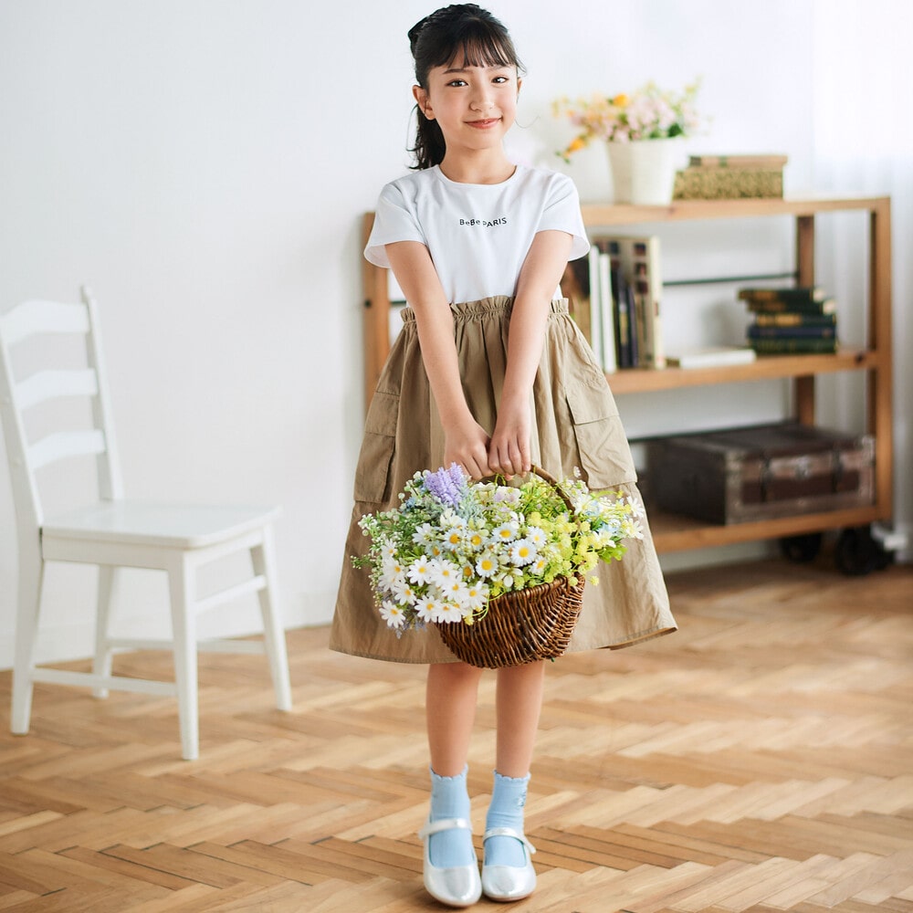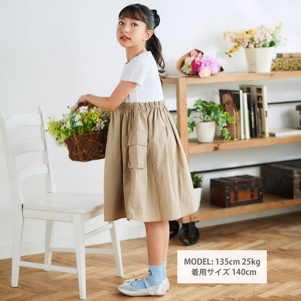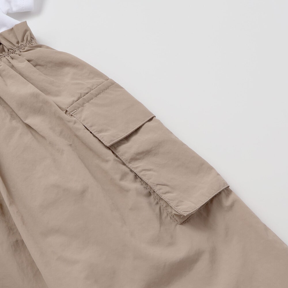 スカートはサイドに大き目のカーゴポケットが付いてアクティブな印象に。