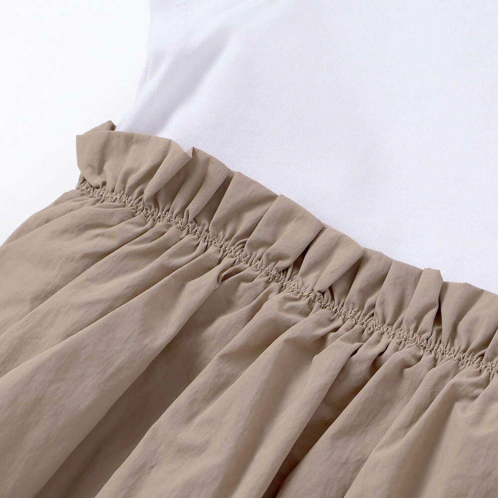 | 素材 | 【上身頃】綿100% 【リブ】綿96% ポリウレタン4% 【スカート部分】(表)ナイロン100% (裏)綿100% |