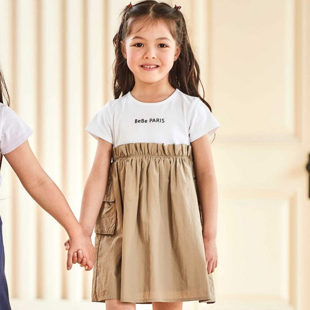 Tシャツとスカートを合わせたような1枚でコーデがきまるデザイン。