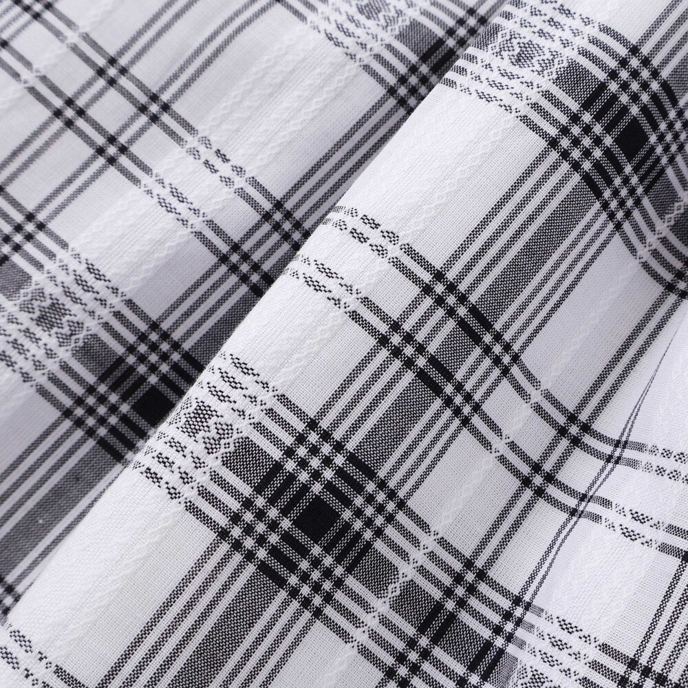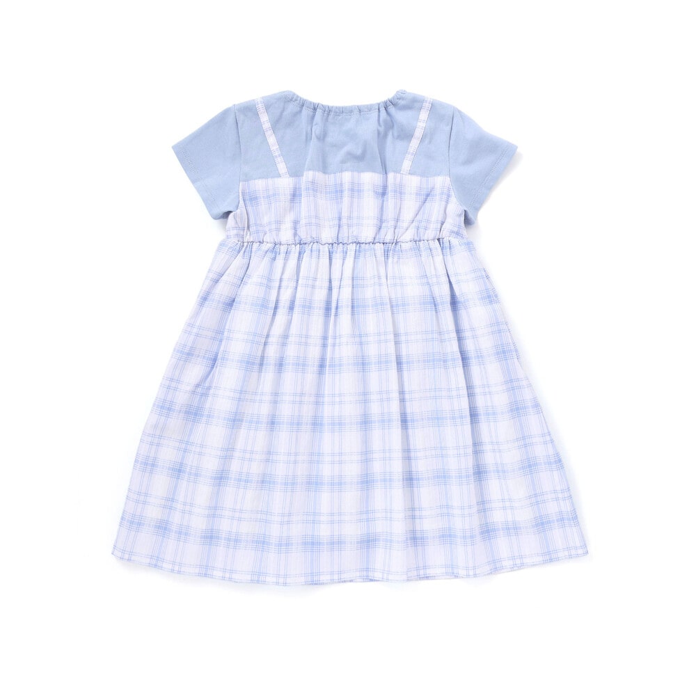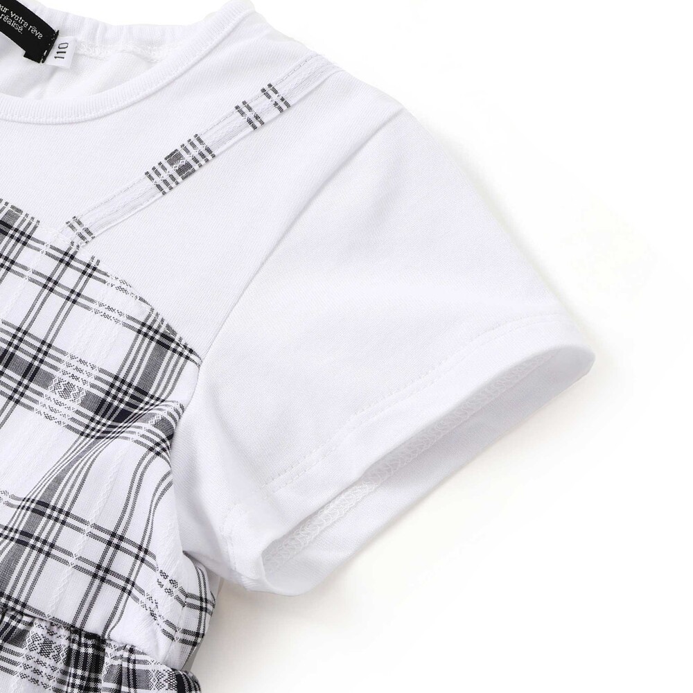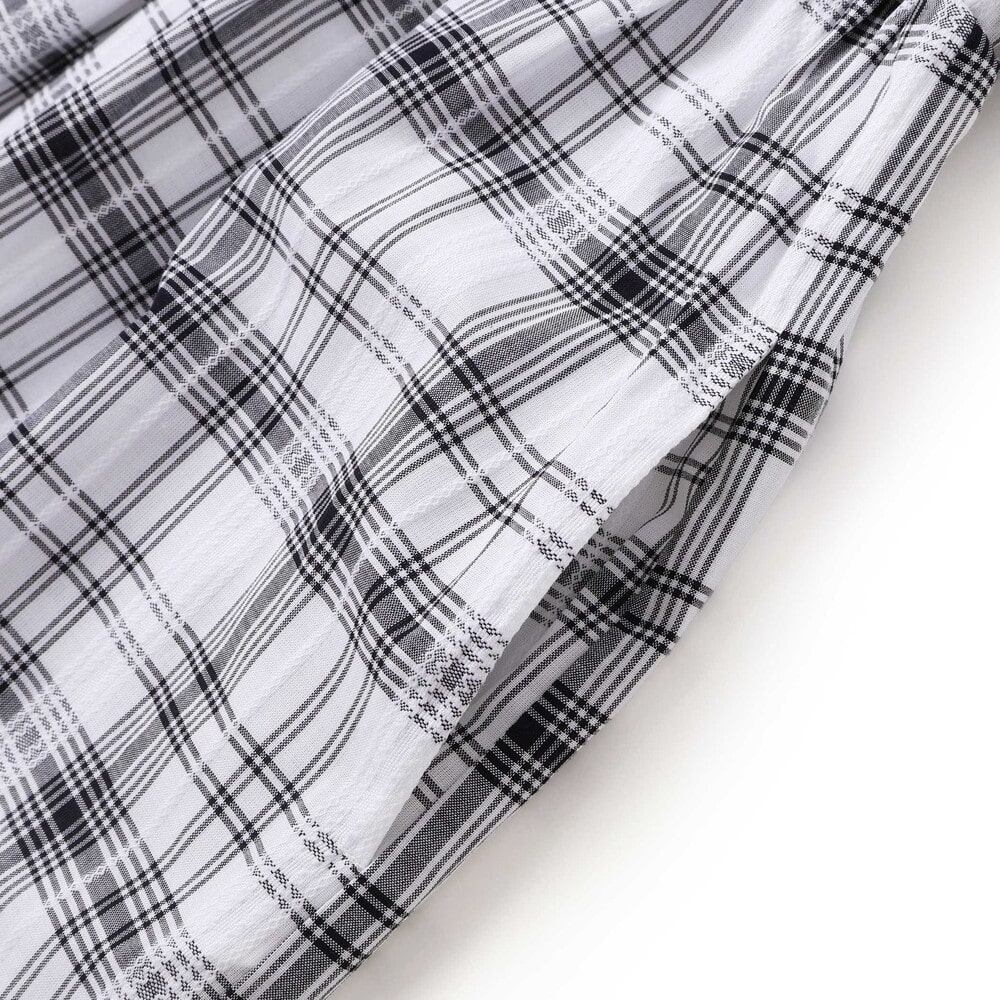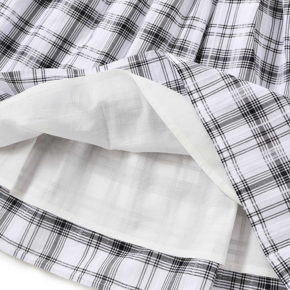 スカート部分のチェックの生地はランダムなストライプの織りがおしゃれなドビー生地。