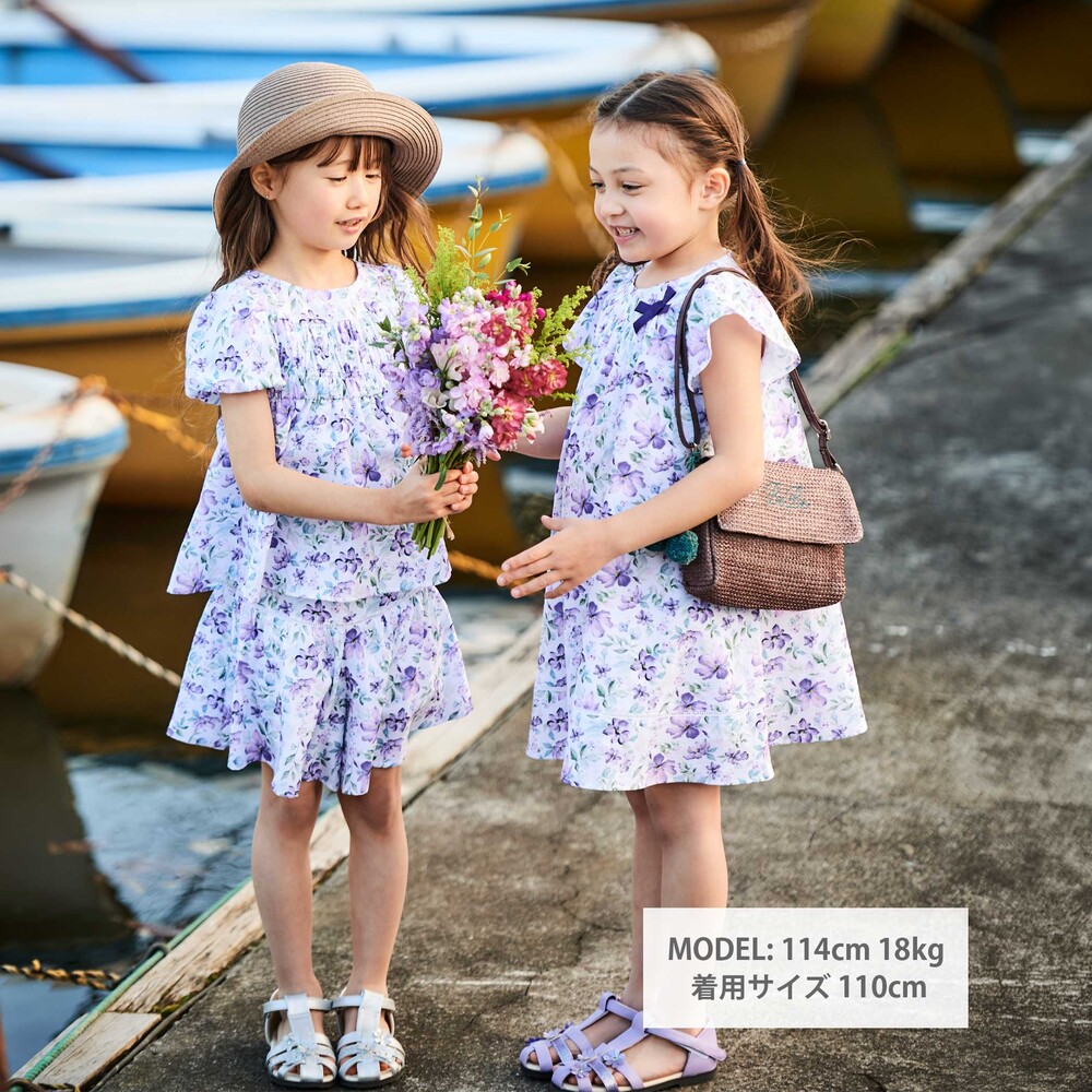 水彩タッチの花柄と、軽やかな素材感で涼し気な夏のガーリースタイルを表現。