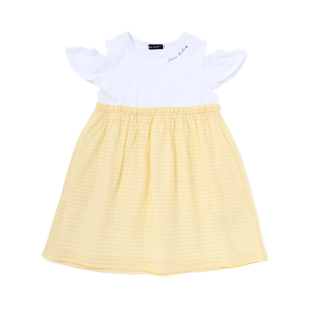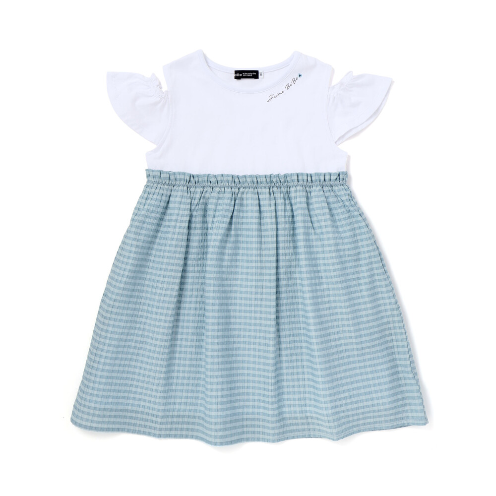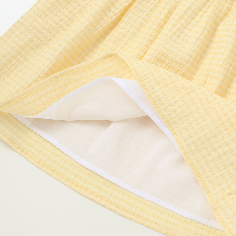 スカート部分はシアー感のあるチェックの布帛生地。