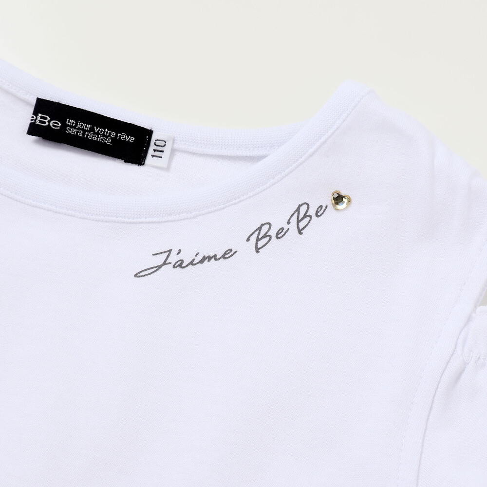 首元にはロゴプリントときらりと光るハートがワンポイントになっています。