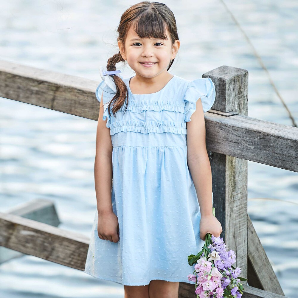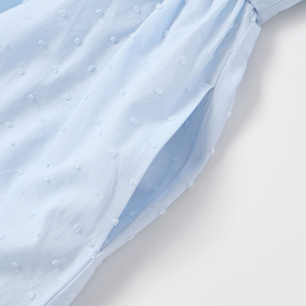 ポコポコとした凹凸がかわいらしいドットのカットドビーを使用したワンピース。