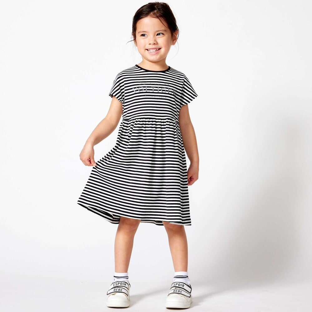 ワンピースは伸縮がありやわらかなボーダーのリブを使用。