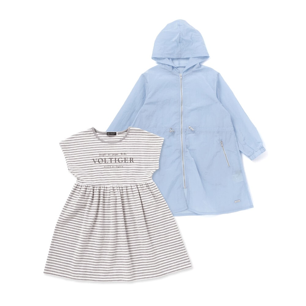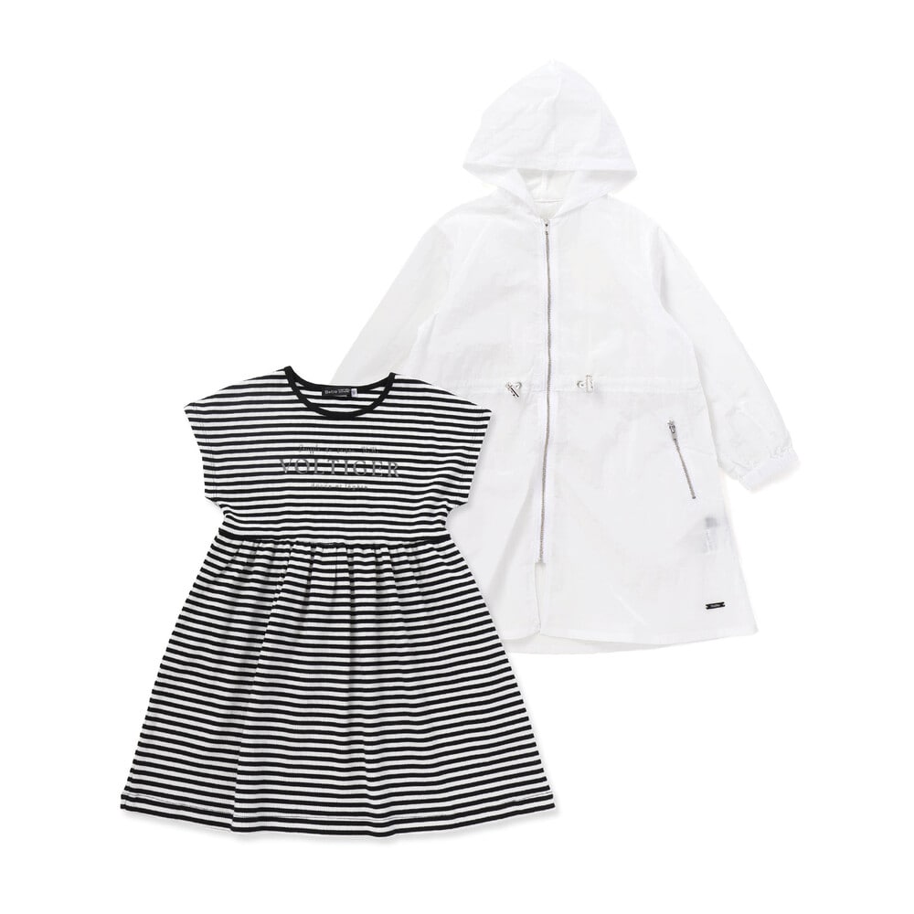 | 素材 | <ホワイト>【パーカー】ナイロン100% 【ワンピース】(本体)綿93% ポリウレタン7% (リブ)綿96% ポリウレタン4% <ブルー>【パーカー】ナイロン100% 【ワンピース】(本体)綿74% ポリエステル20% ポリウレタン6% (リブ)綿57% ポリエステル40% ポリウレタン3% |