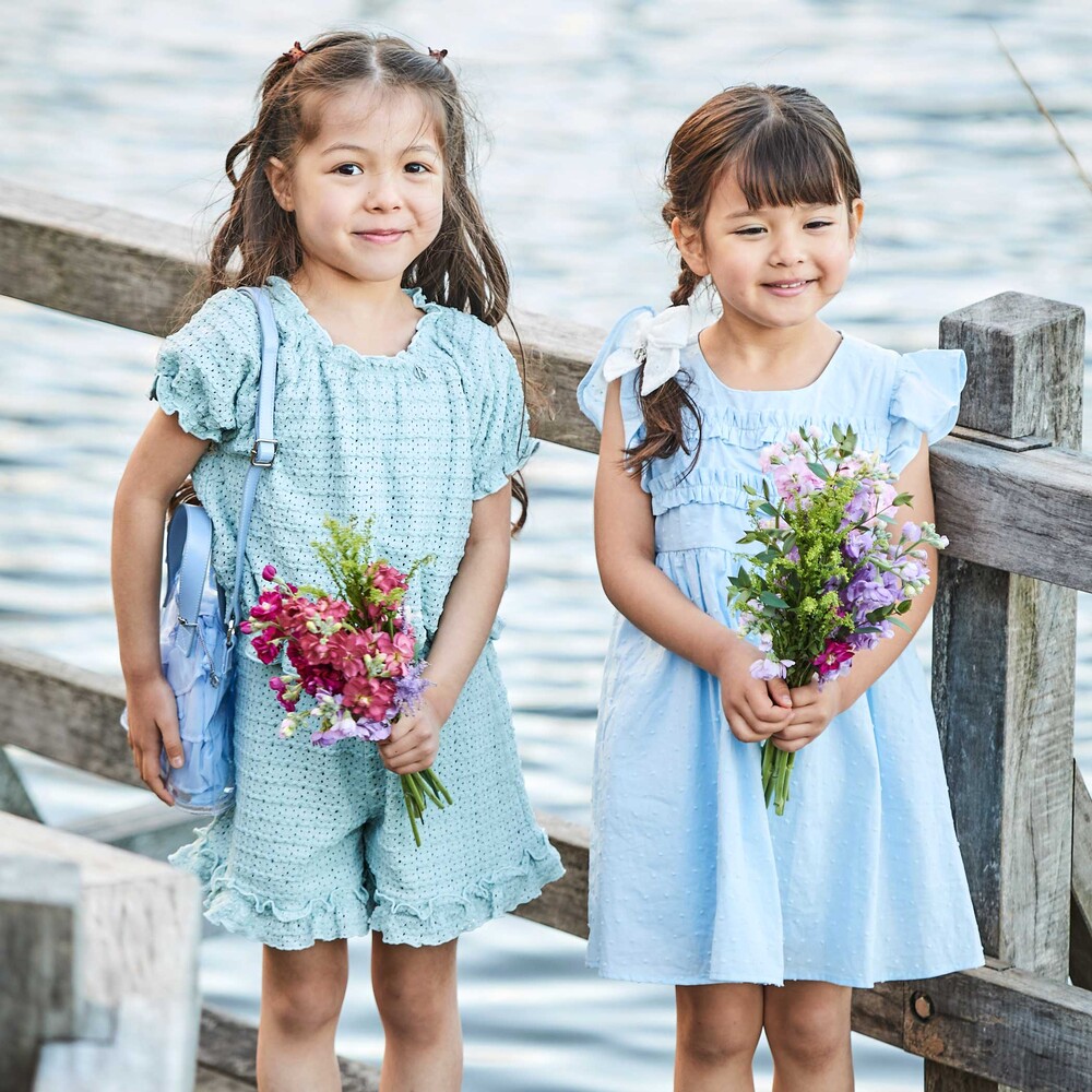 水彩タッチの花柄と、軽やかな素材感で涼し気な夏のガーリースタイルを表現。