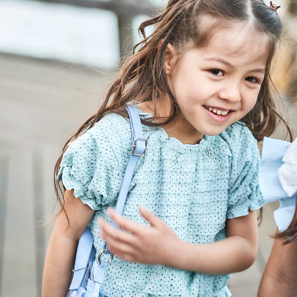 首元にきらりと光るチャームもワンポイントになっています。