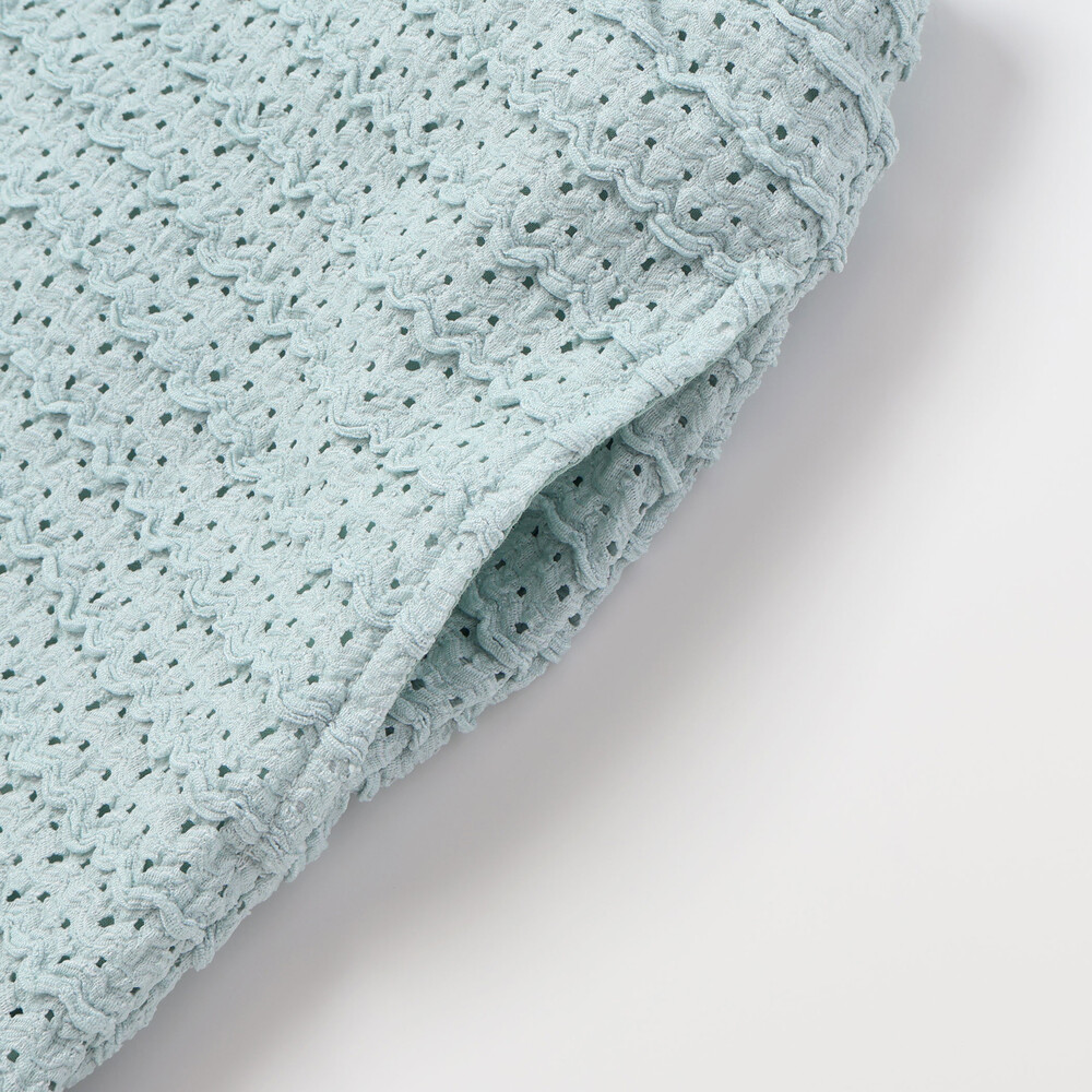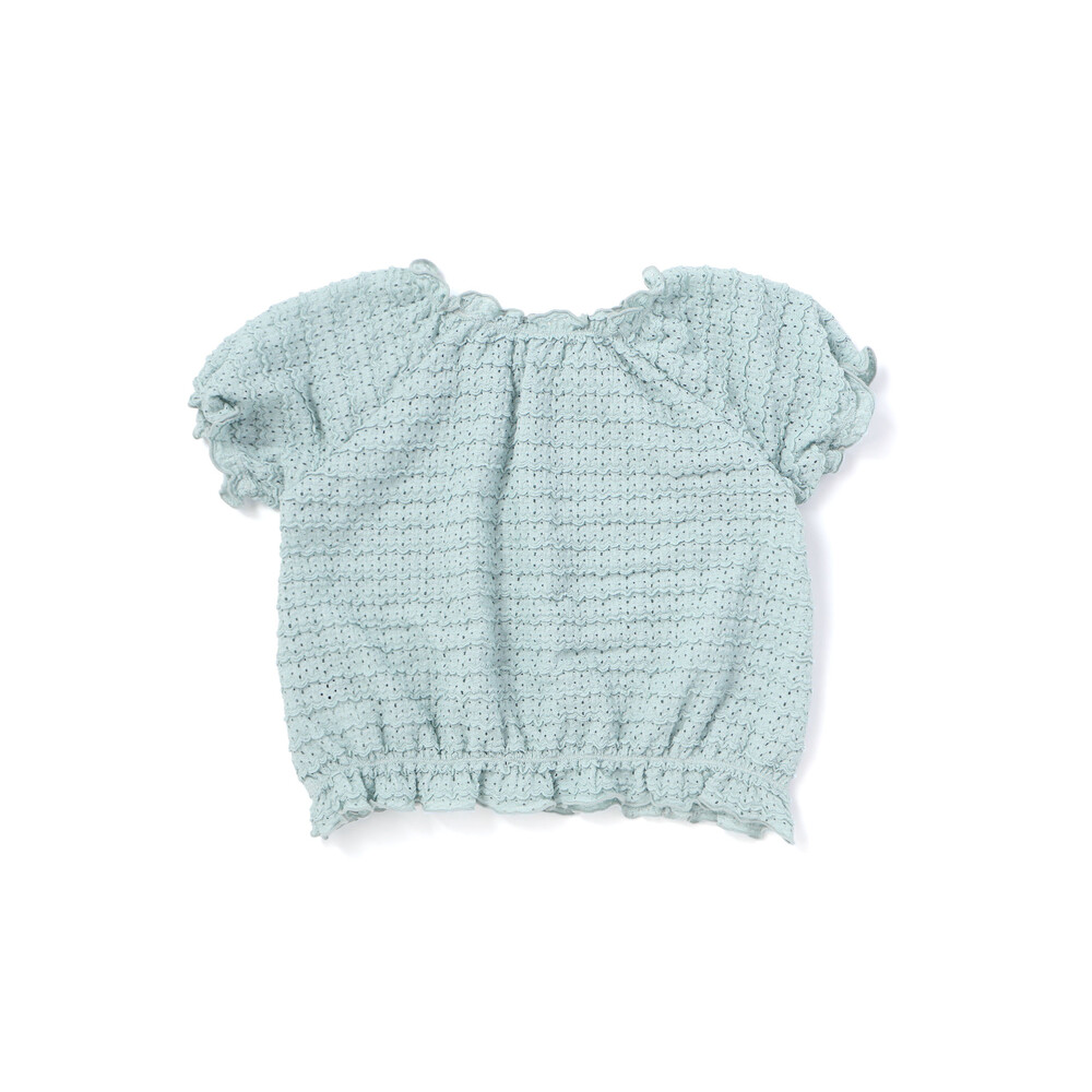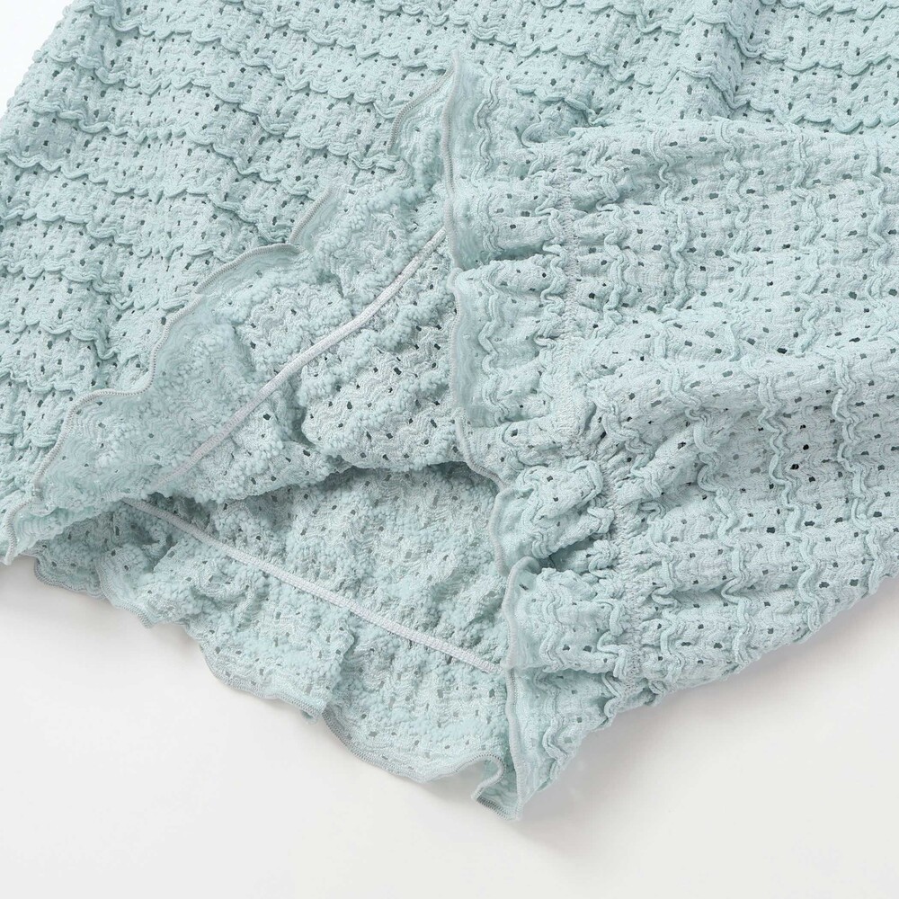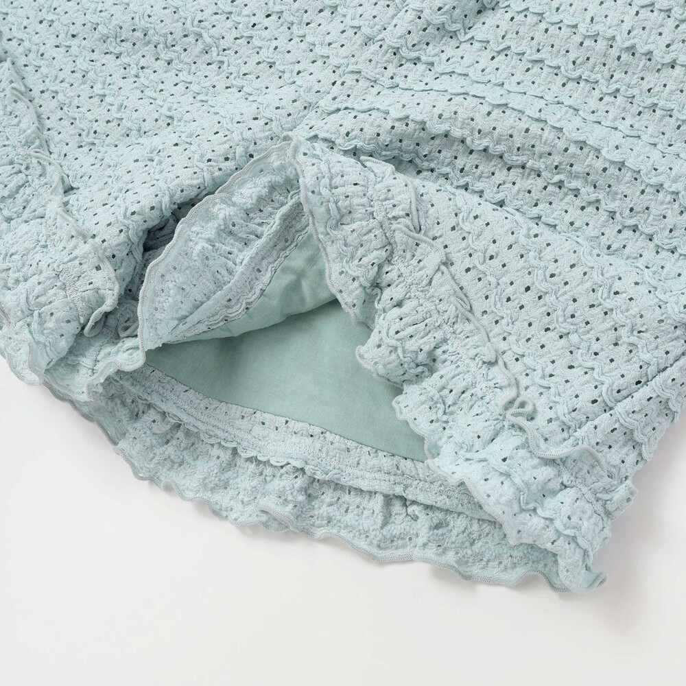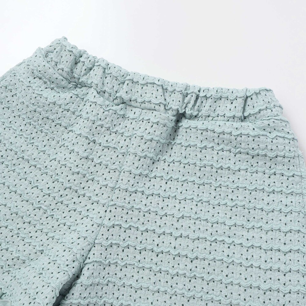 ボーダー風のポコポコとしたフリルが可愛らしいレース生地のセットアップ。