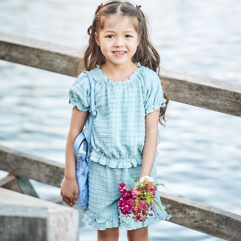 パンツは裾のボリュームあるフリルが可愛いショートパンツ。