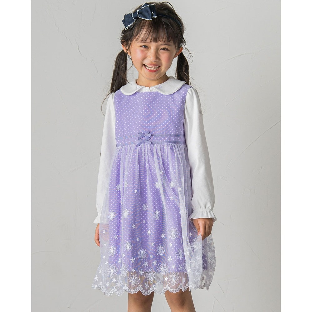スカート部分はドット柄の生地にチュール生地を重ねたオシャレなデザイン。