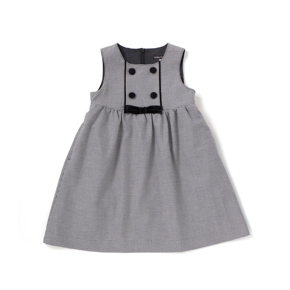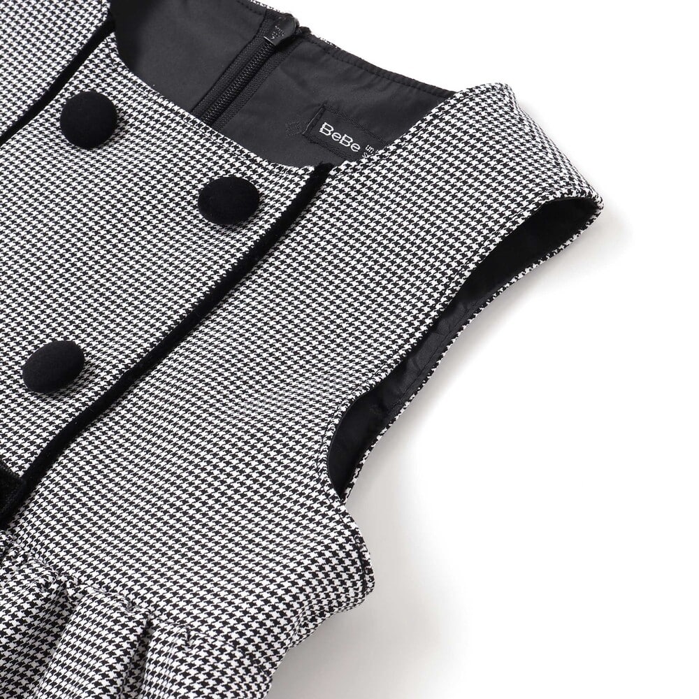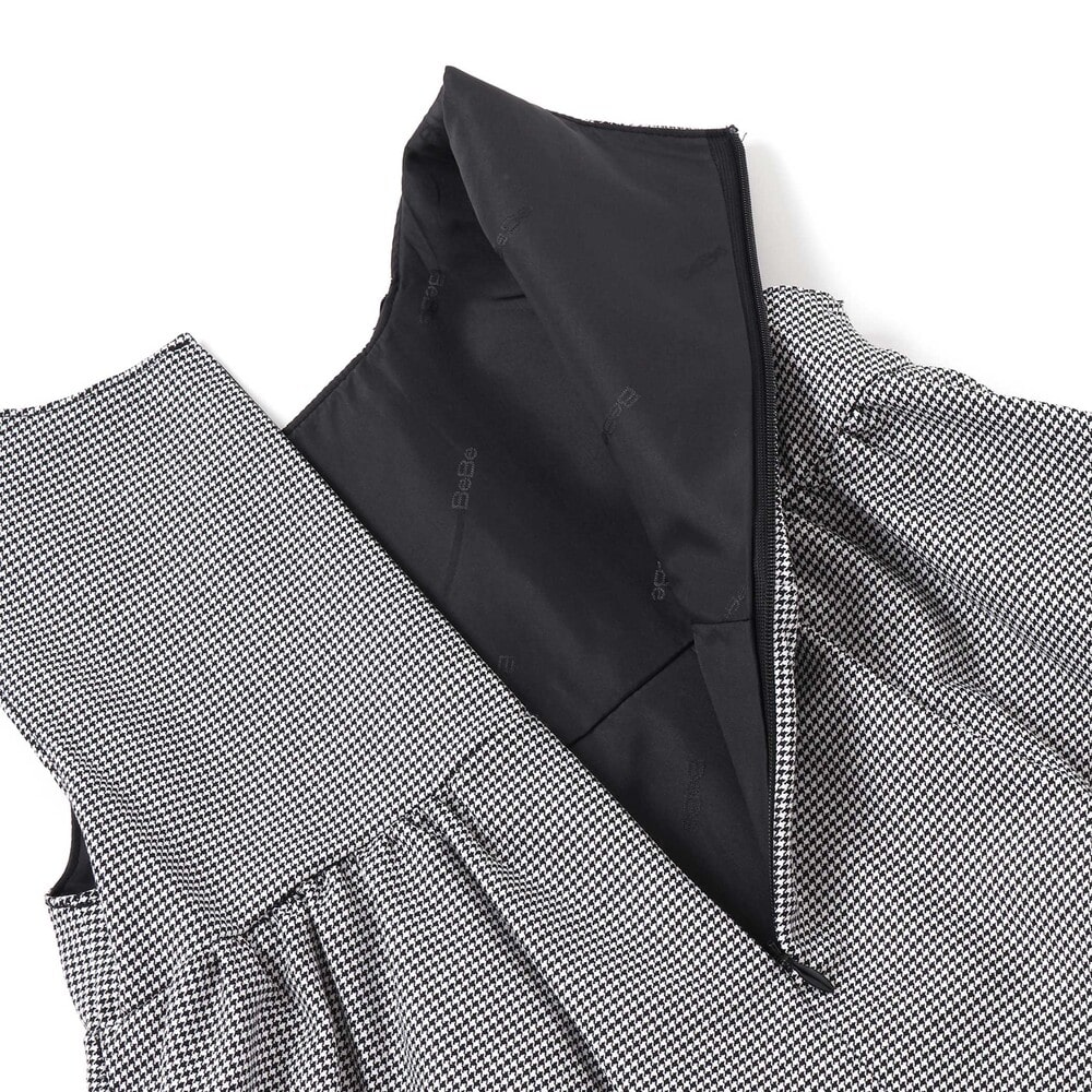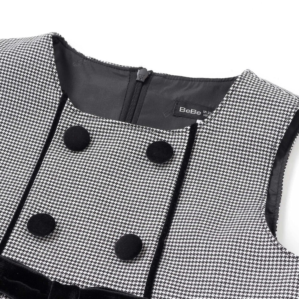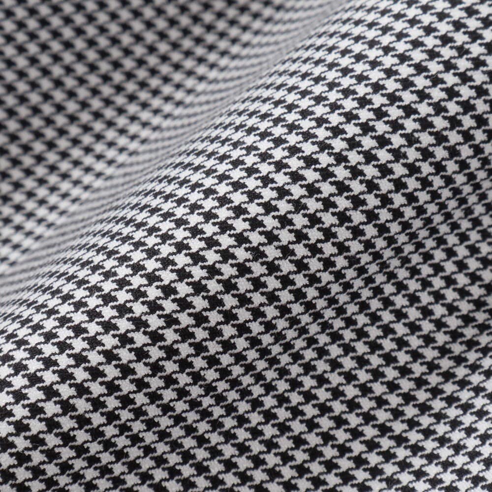 クラシカルな千鳥柄の身生地に、胸元には4つのくるみボタンをあしらい、上品なアクセントをプラス。