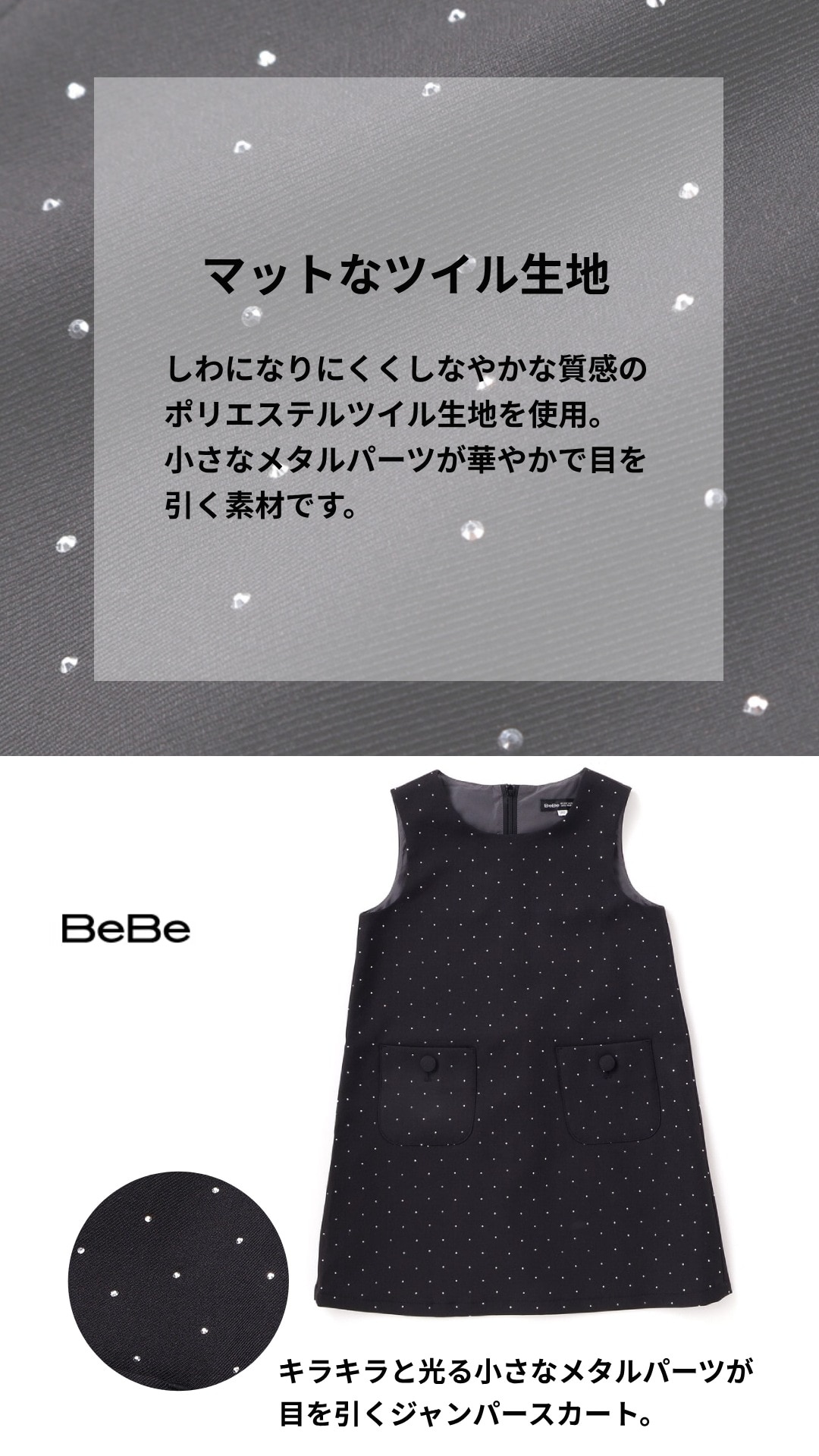 キラキラと光る小さなメタルパーツが目を引くジャンパースカート。