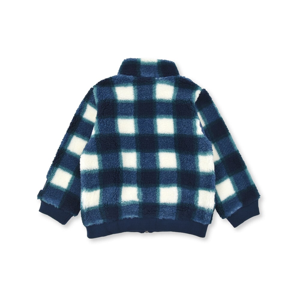 厚みのあるボア素材に大き目なチェックをプリントしたジップブルゾン。