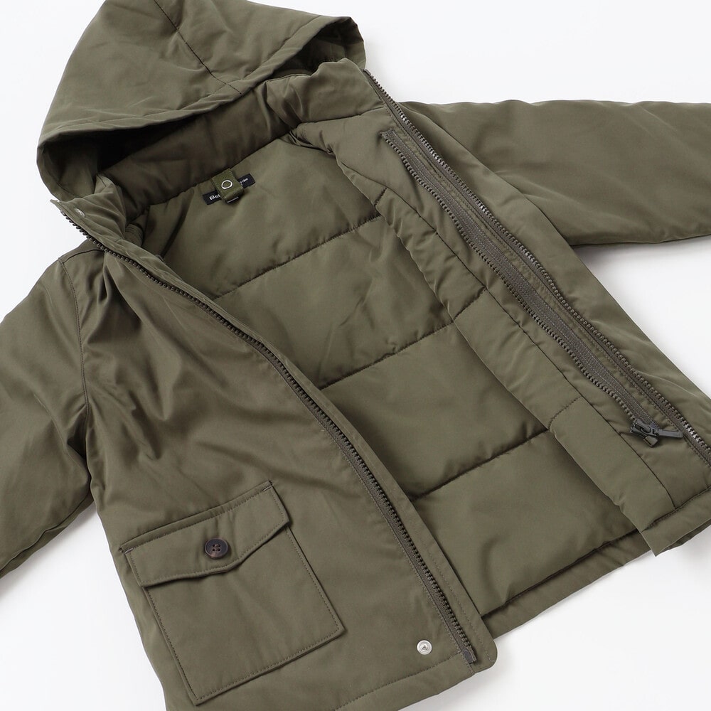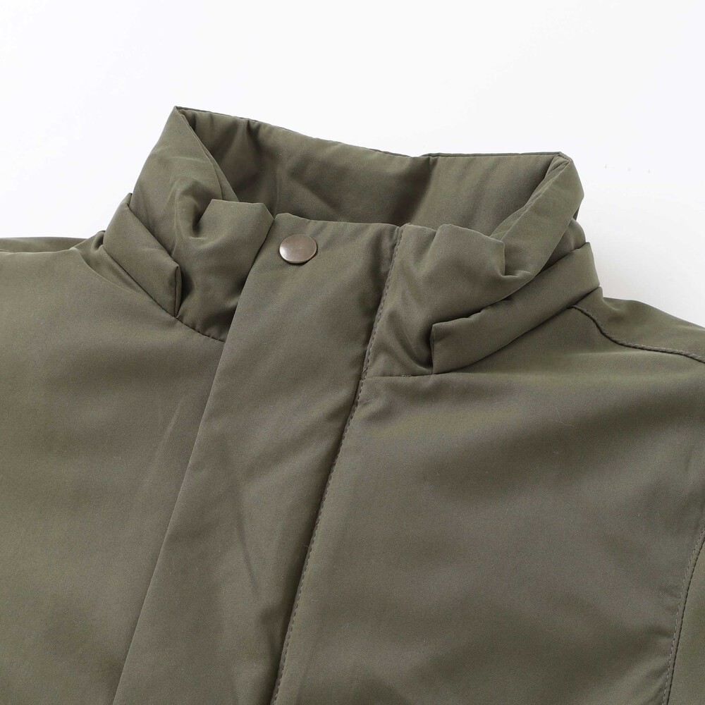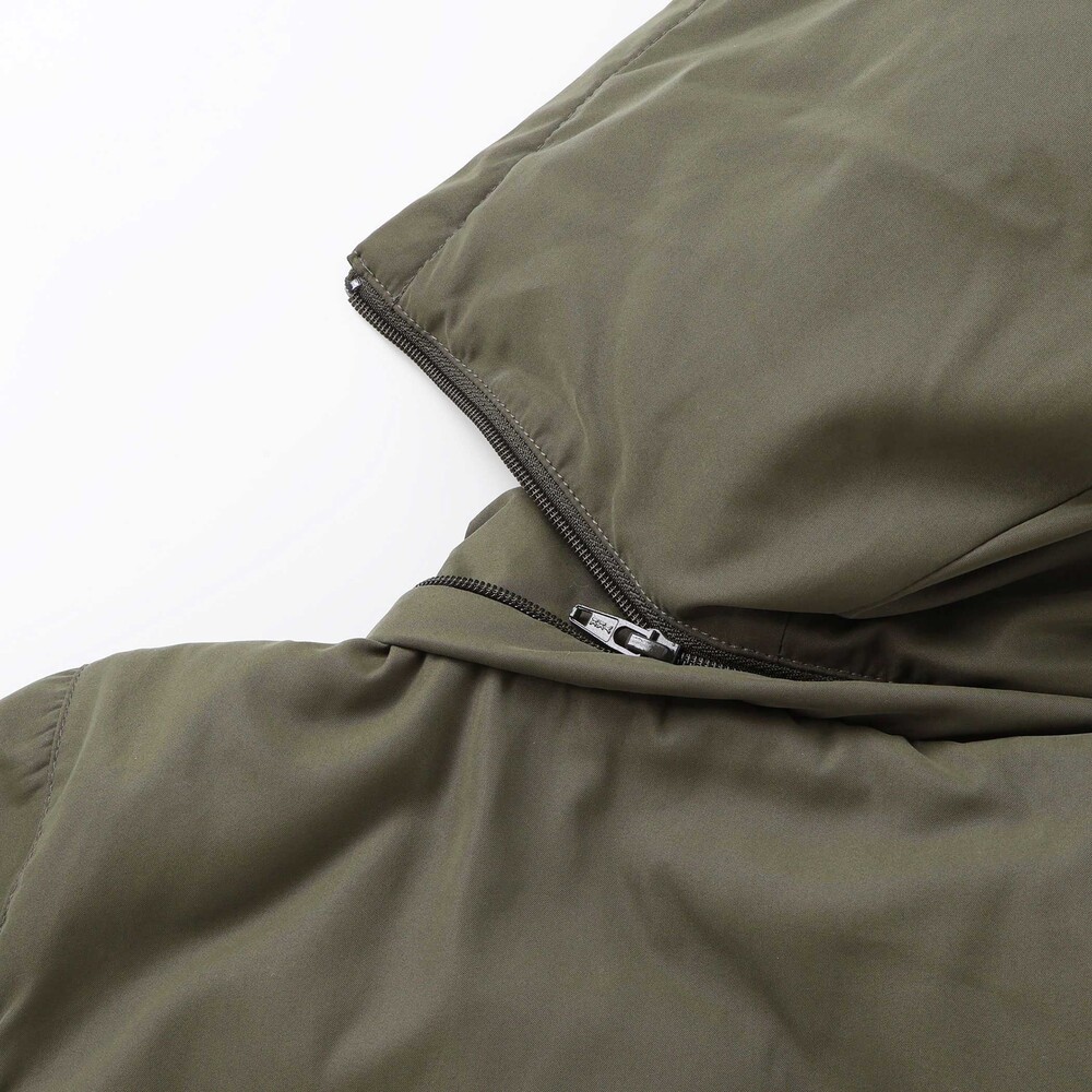 マットな質感で温かみのあるナイロンピーチ起毛を使用した中綿コート。