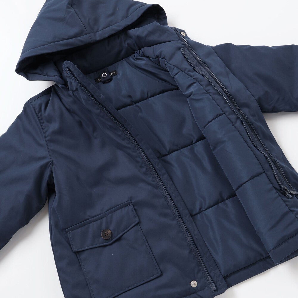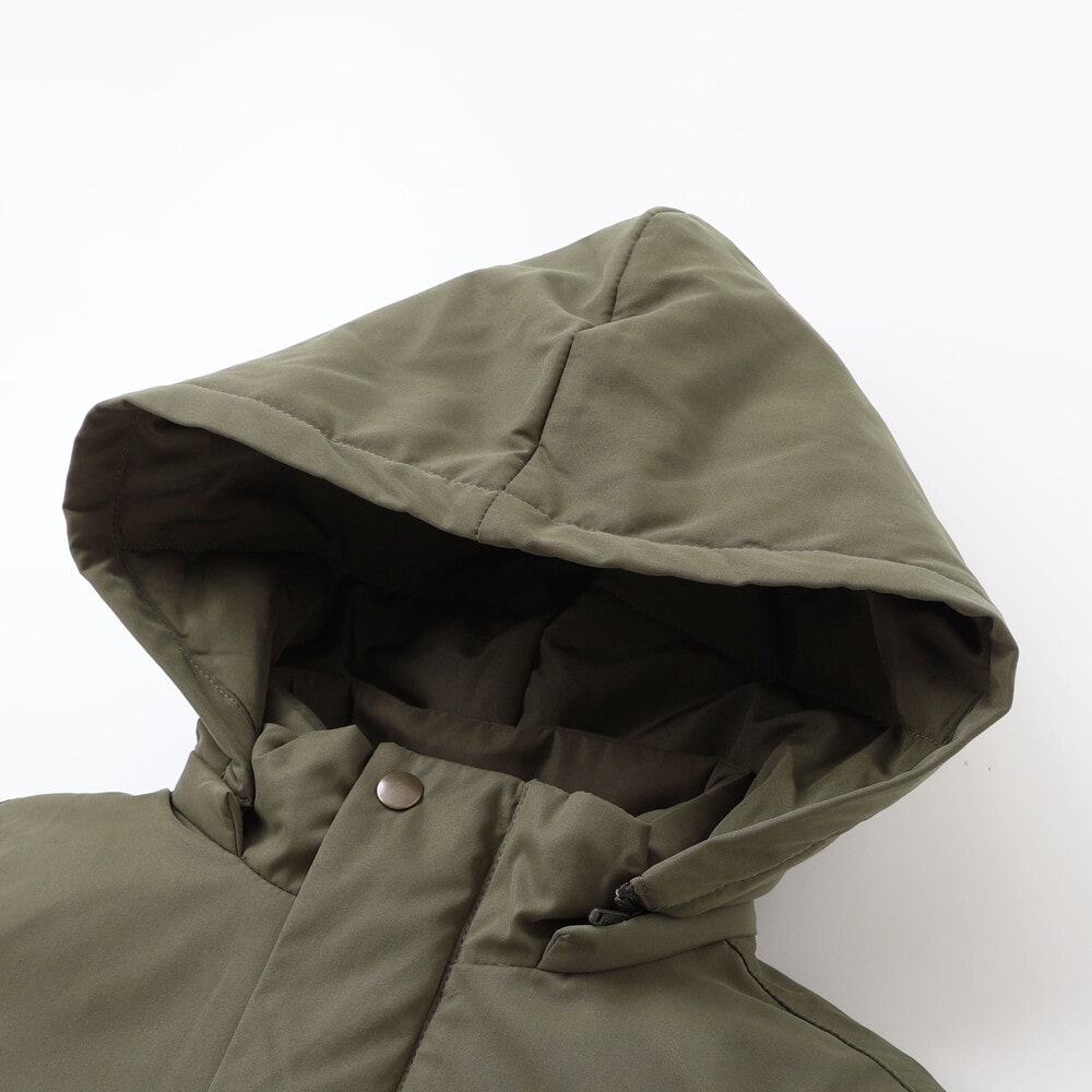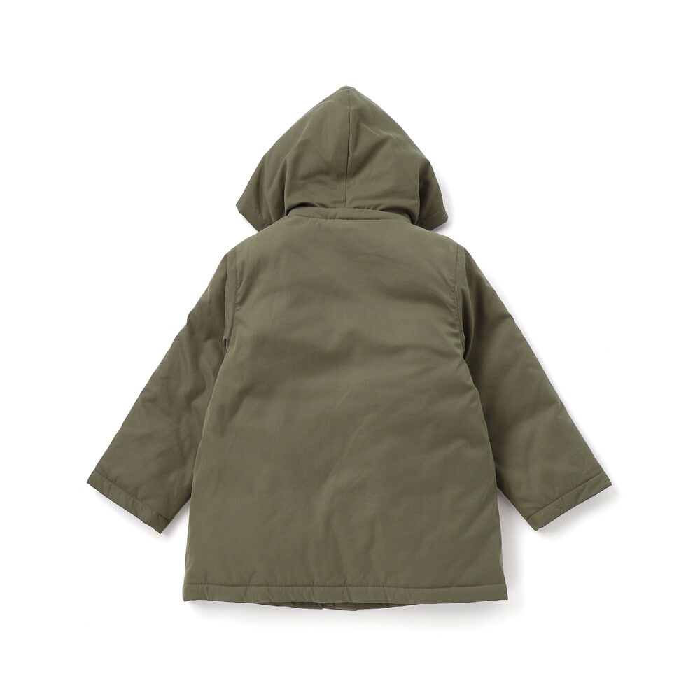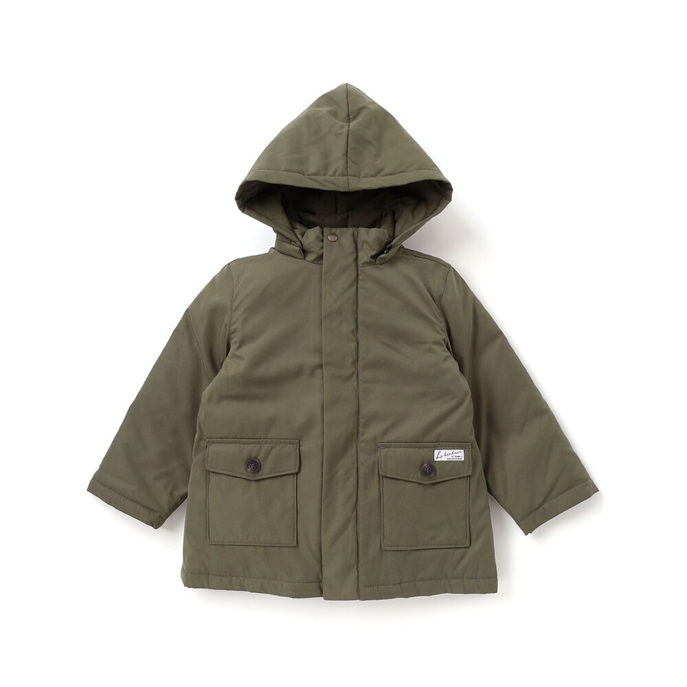 マットな質感で温かみのあるナイロンピーチ起毛を使用した中綿コート。