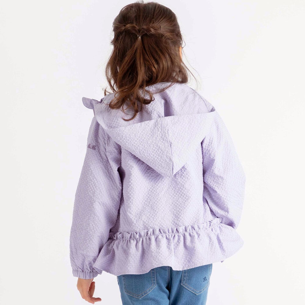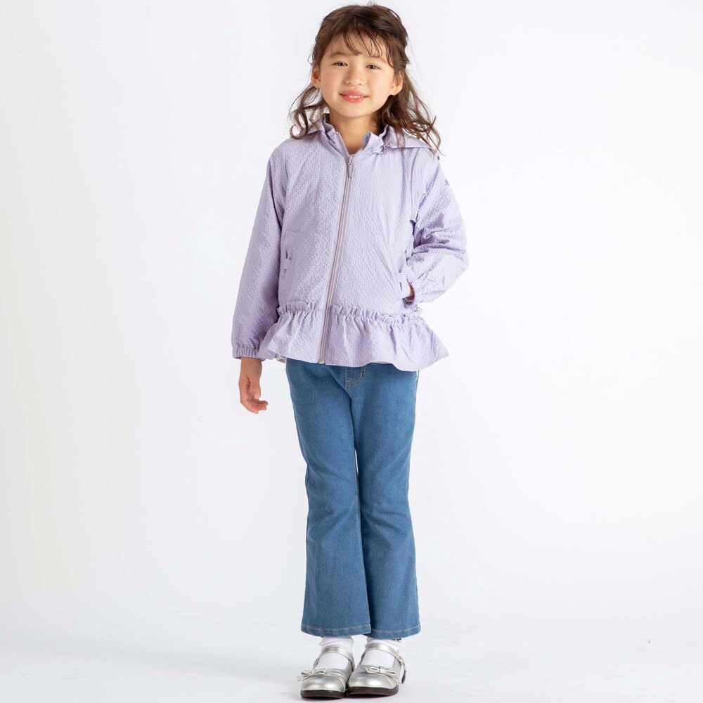 女の子らしい裾広がりのシルエットがかわいいライトアウター。