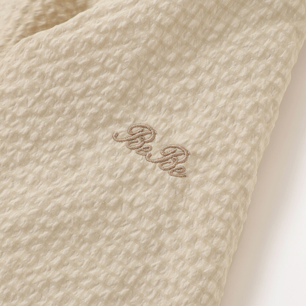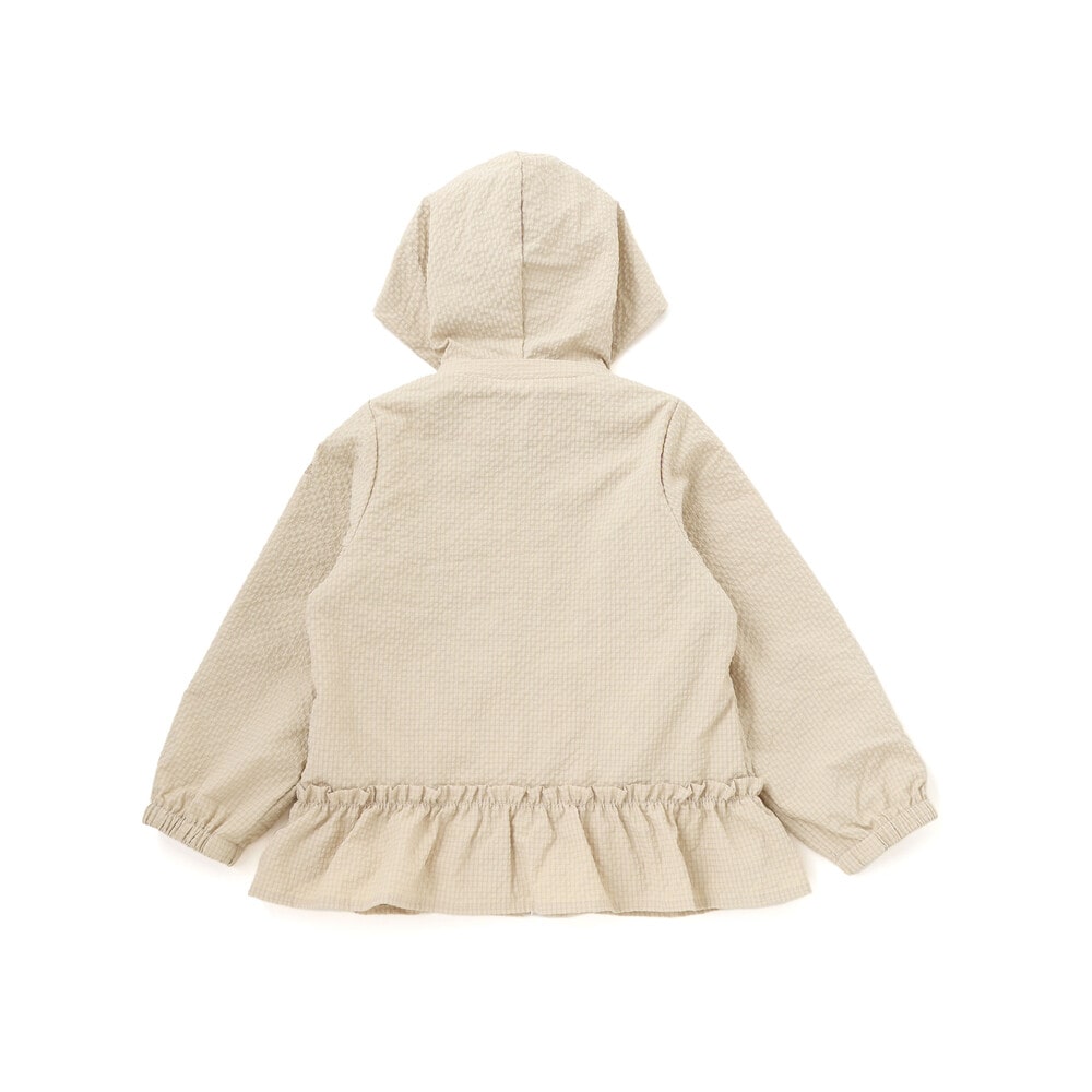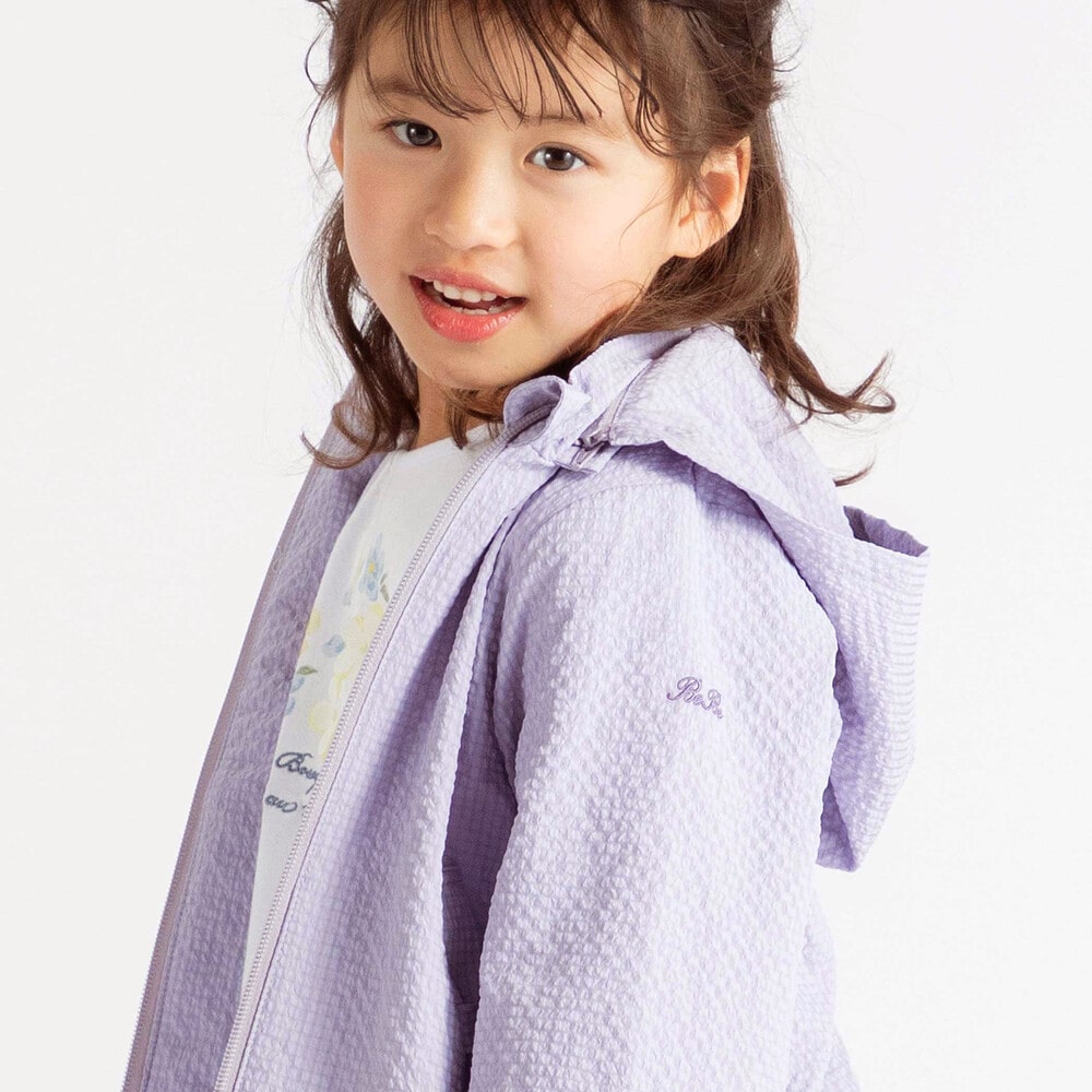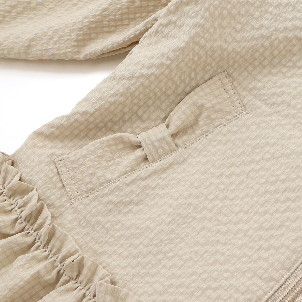 表面に凹凸のあるサッカー生地を使用。撥水加工が施されているので通学通園などのデイリー使いにもピッタリ。