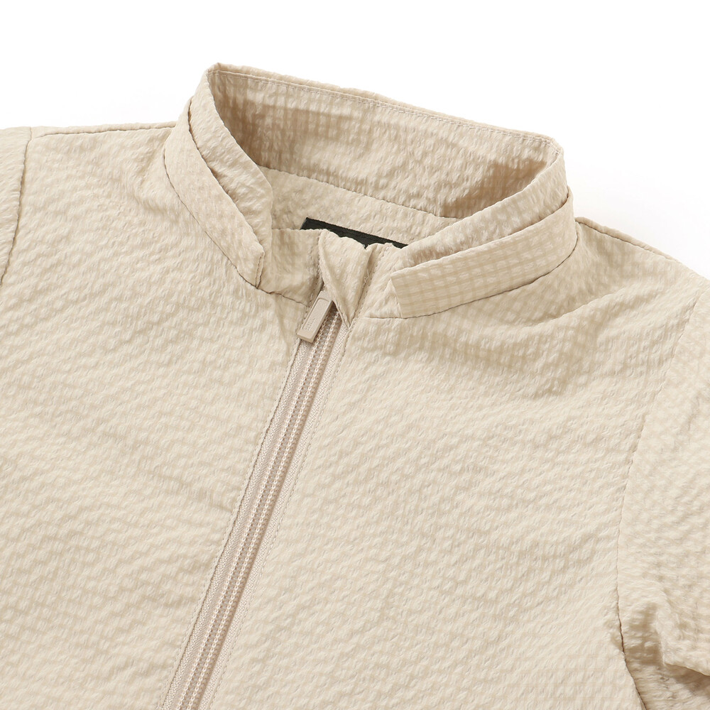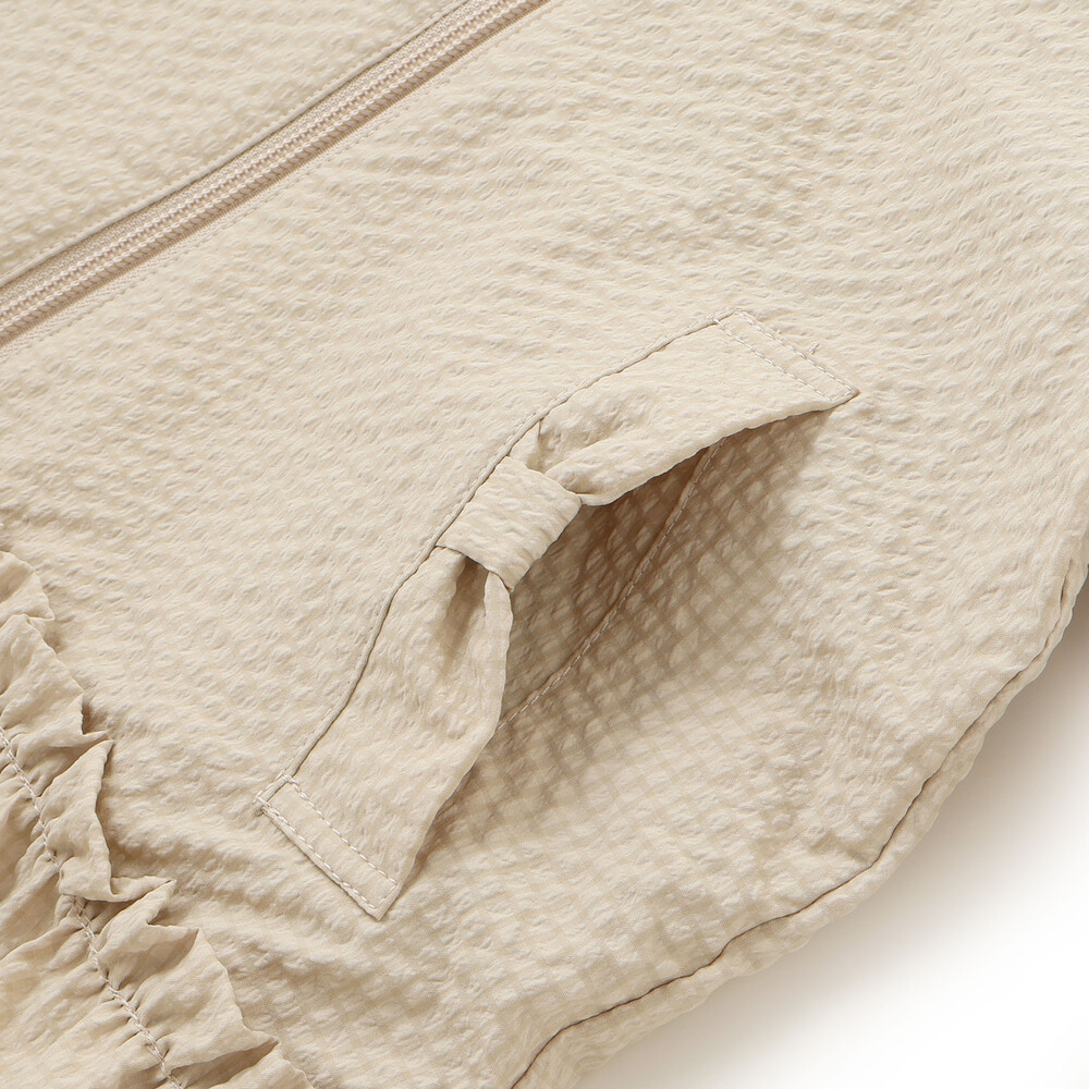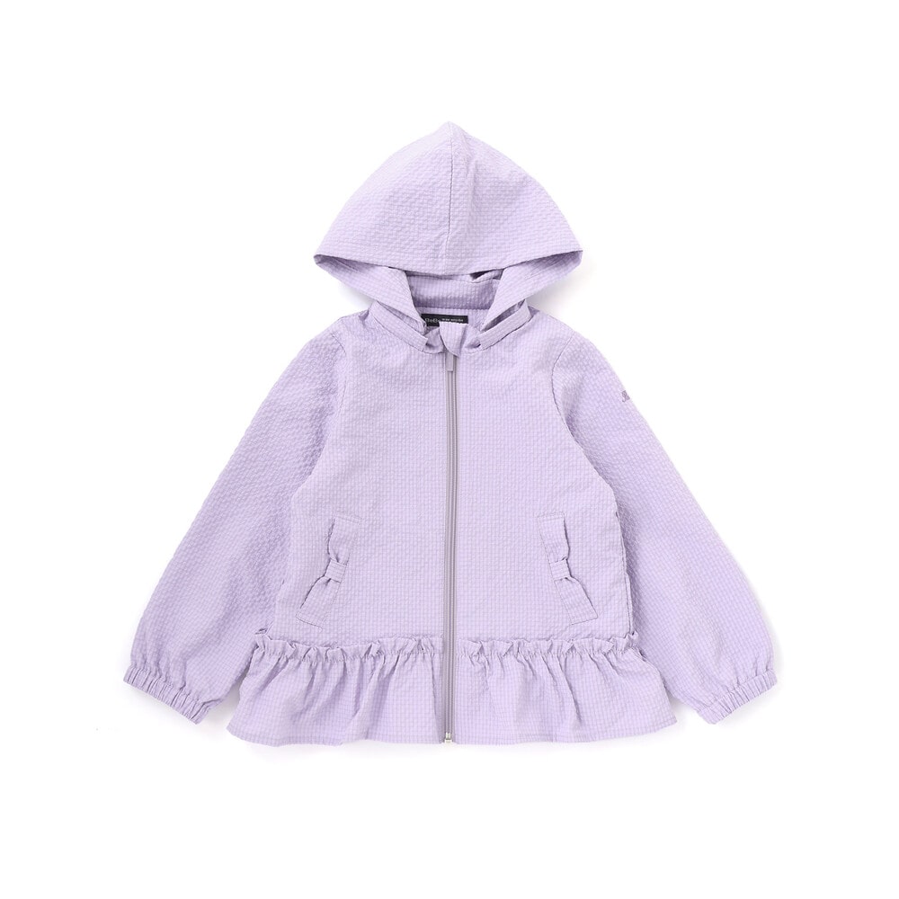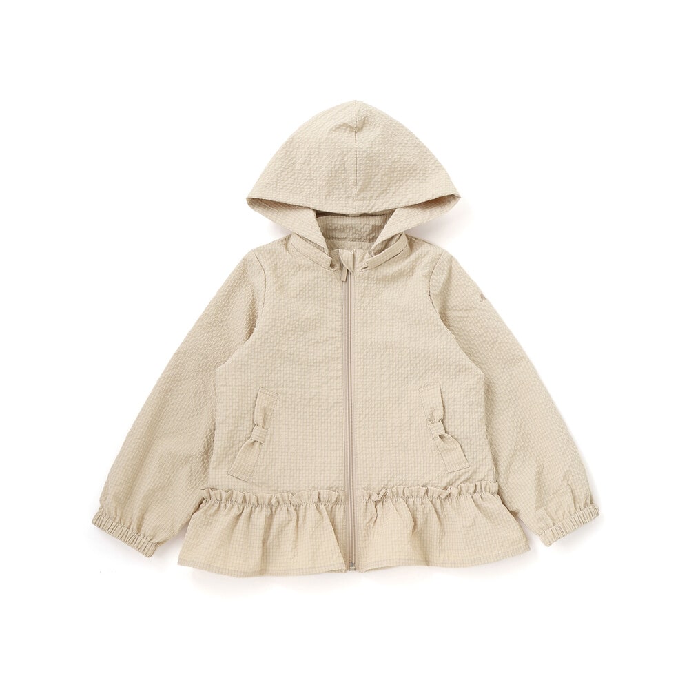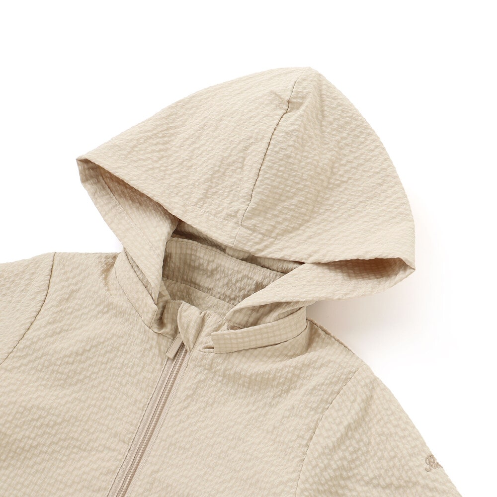 表面に凹凸のあるサッカー生地を使用。撥水加工が施されているので通学通園などのデイリー使いにもピッタリ。