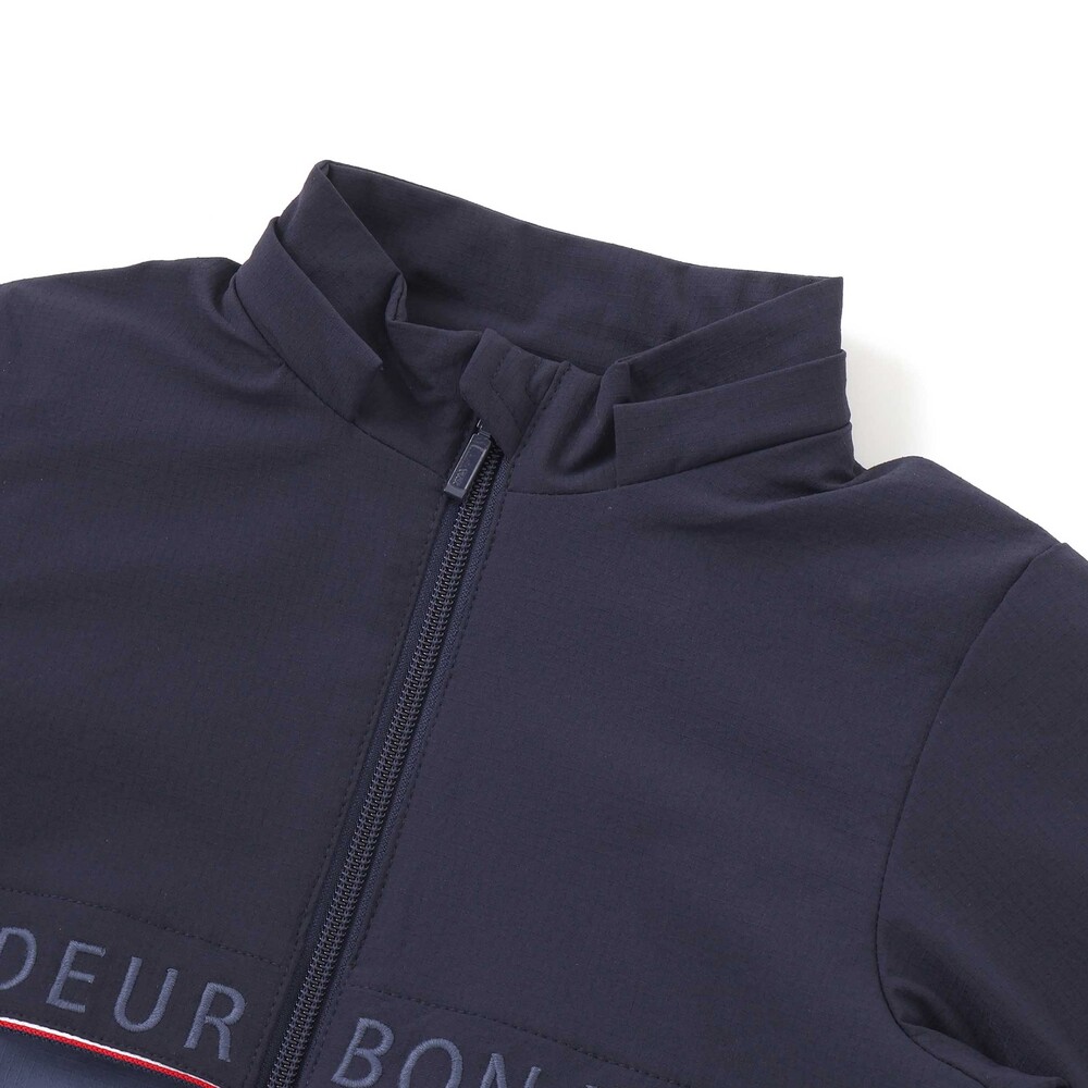 胸部分には同系色の糸でロゴ刺しゅうを施して上品なカッコよさをプラス。
