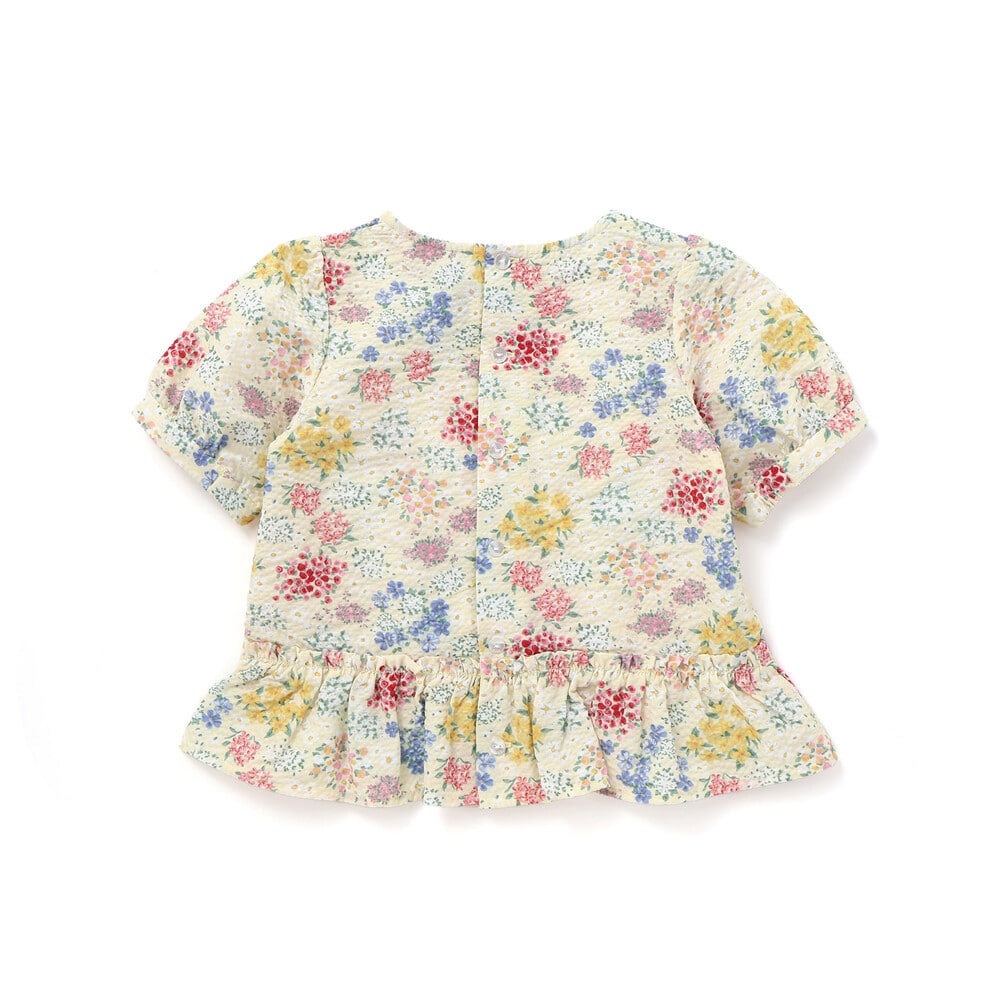 凹凸感のあるリップル生地にオリジナルの花柄をプリントした半袖ブラウス。