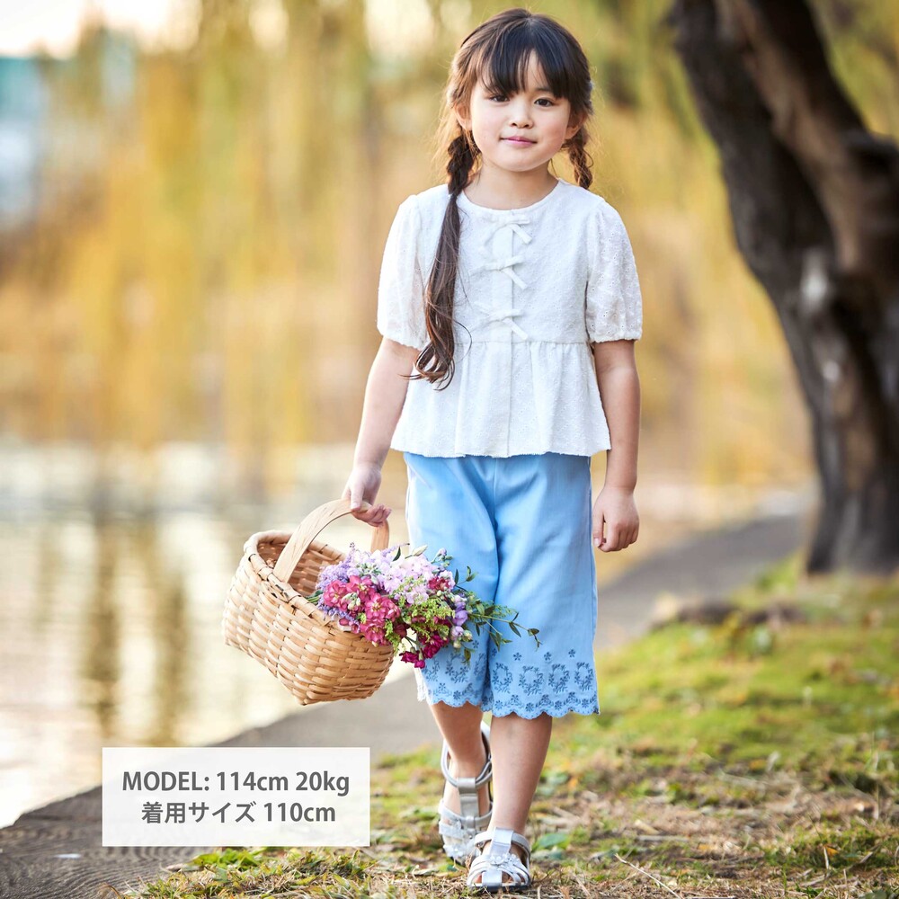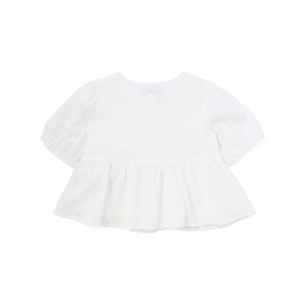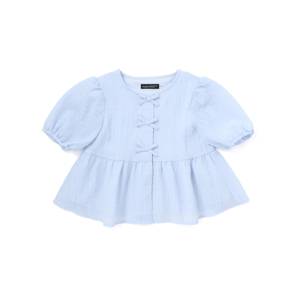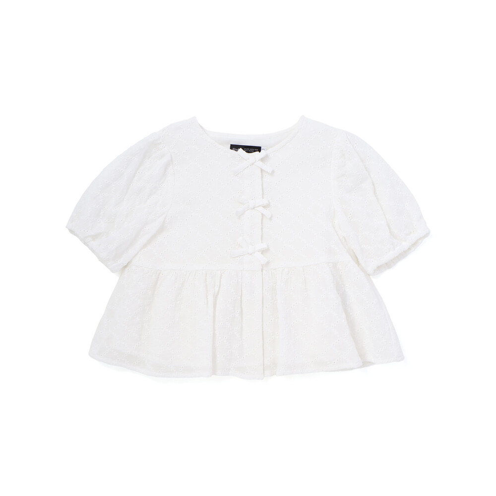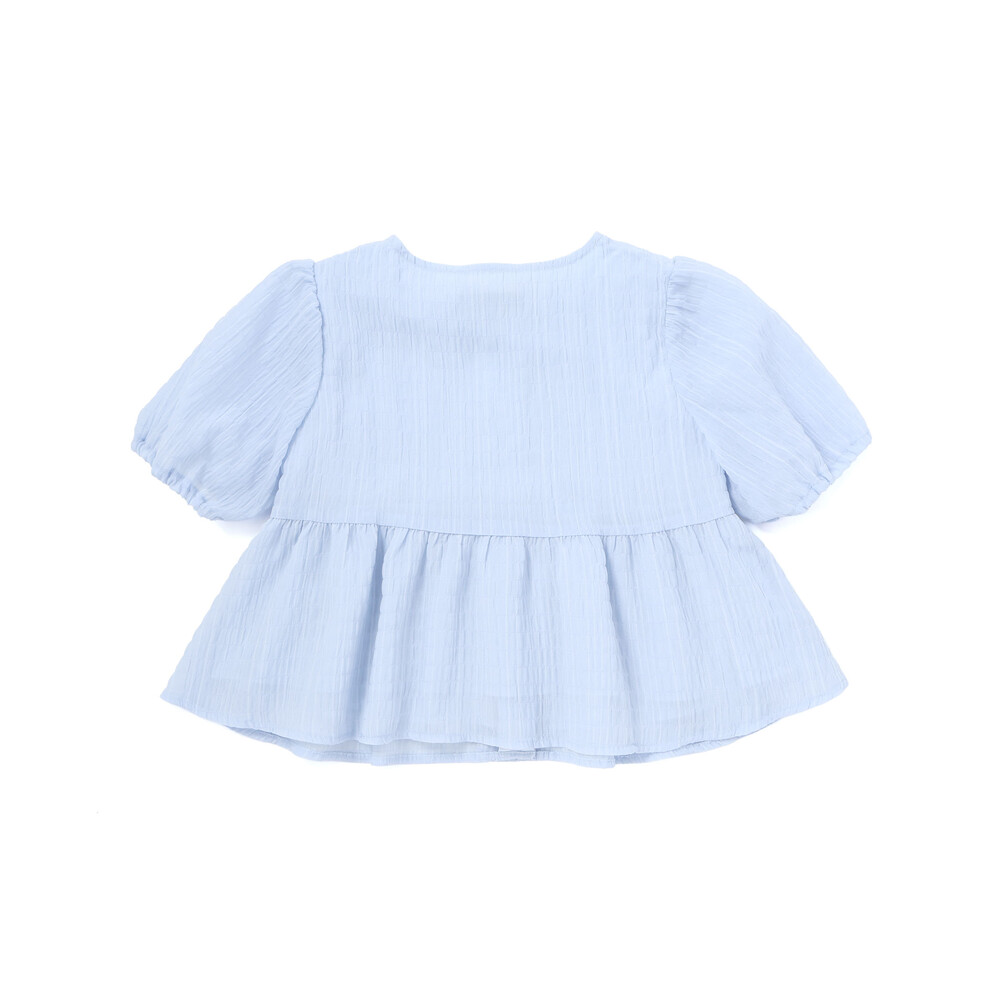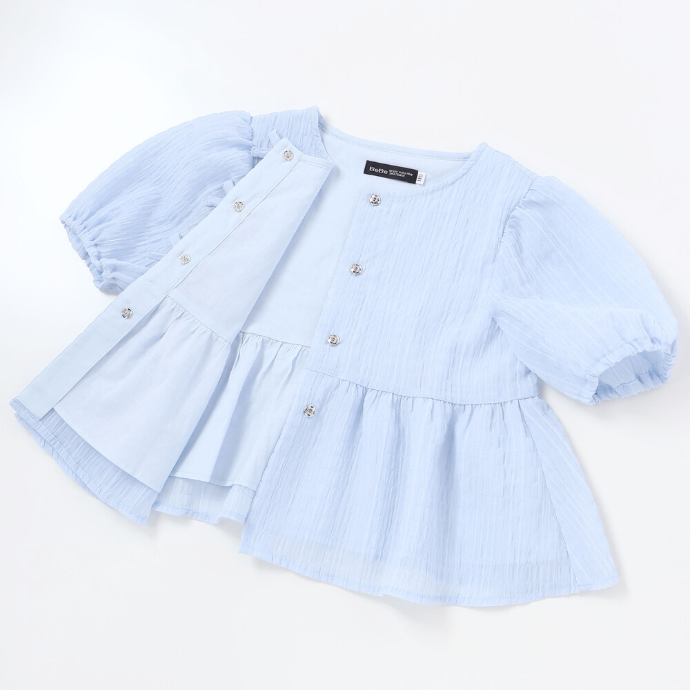 羽織りとしても可愛く着られる前開き仕様の半袖ブラウス。