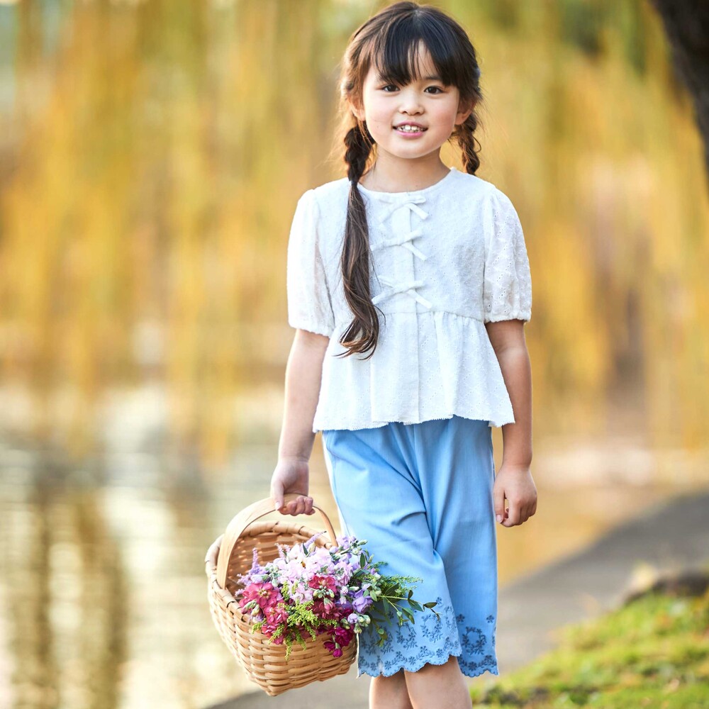 水彩タッチの花柄と、軽やかな素材感で涼し気な夏のガーリースタイルを表現。