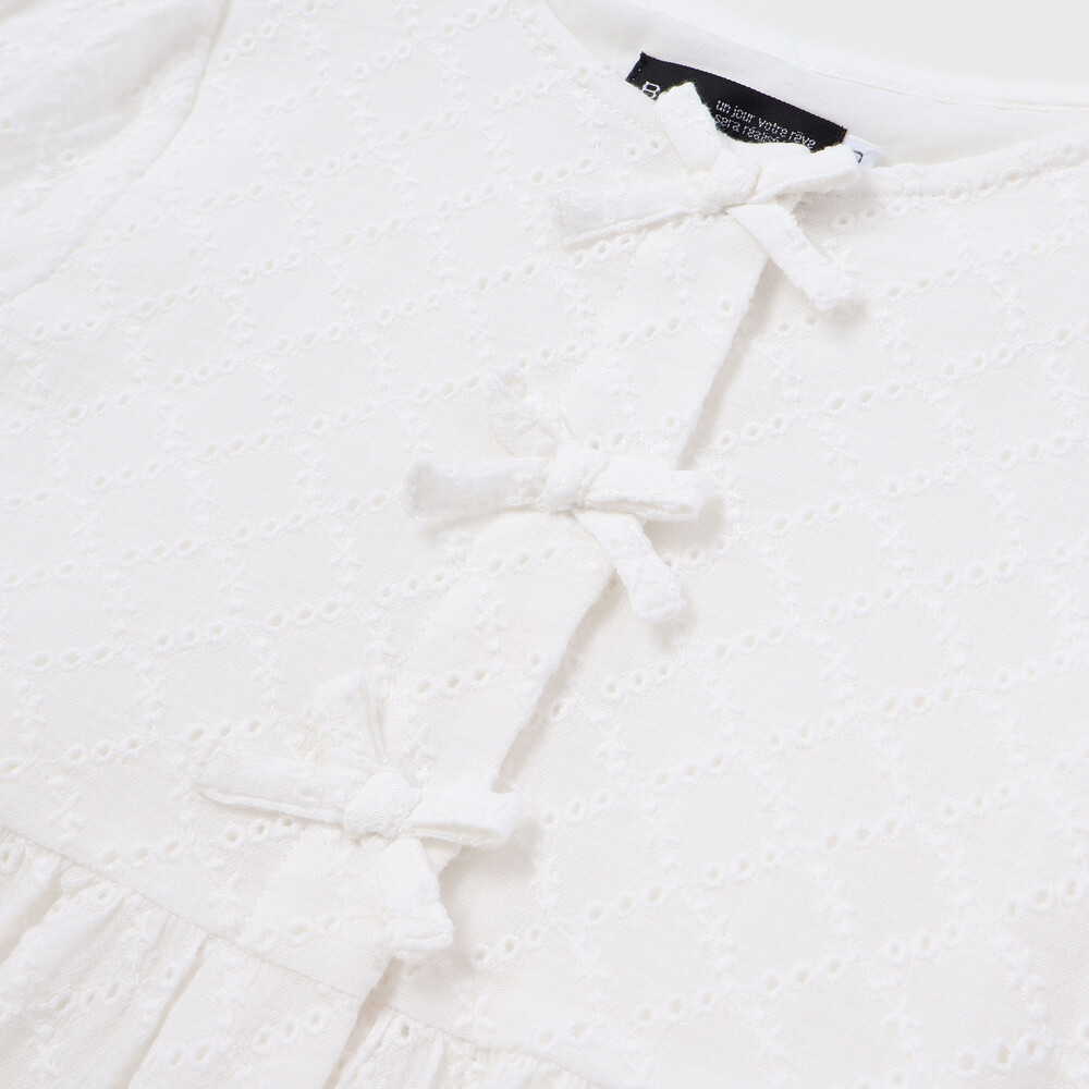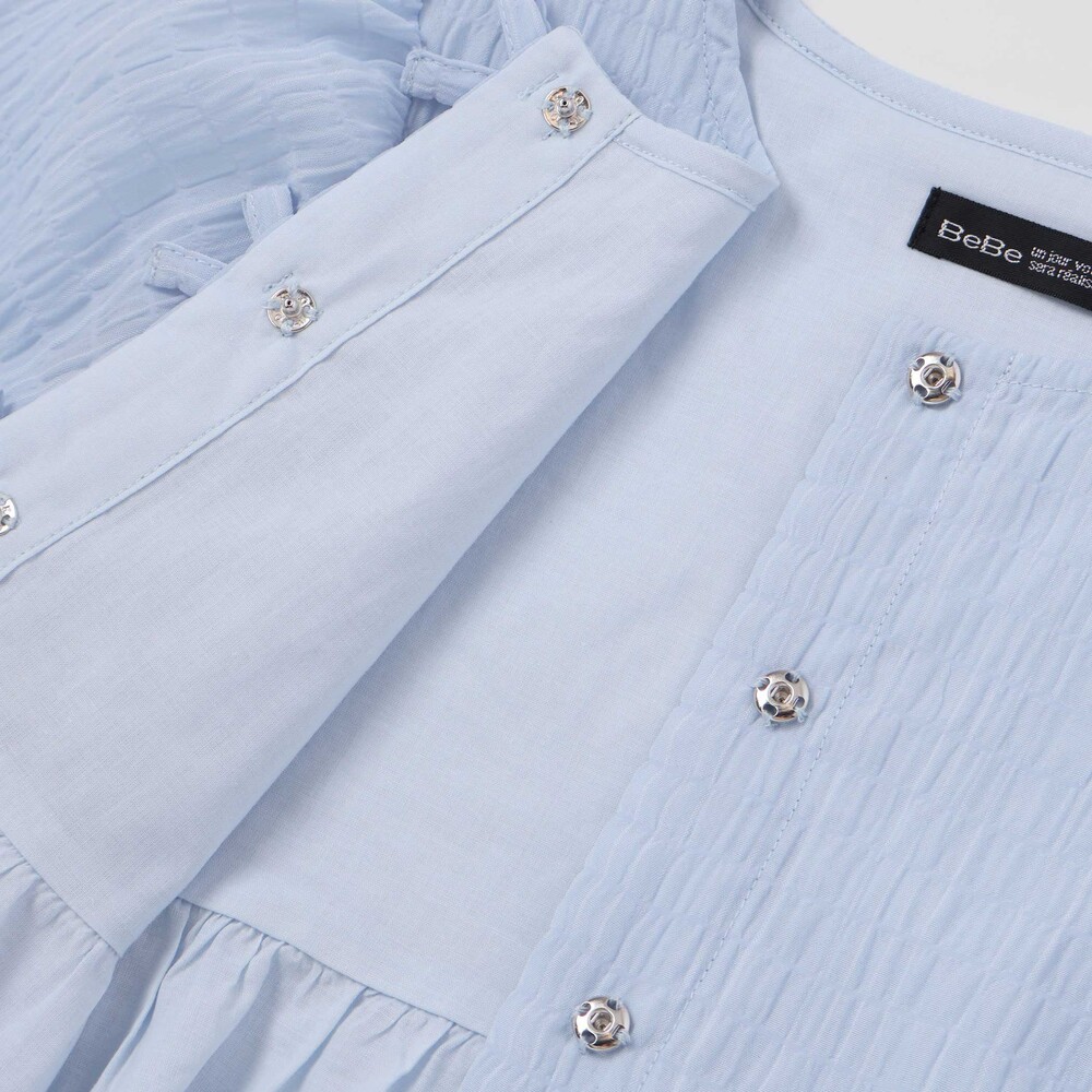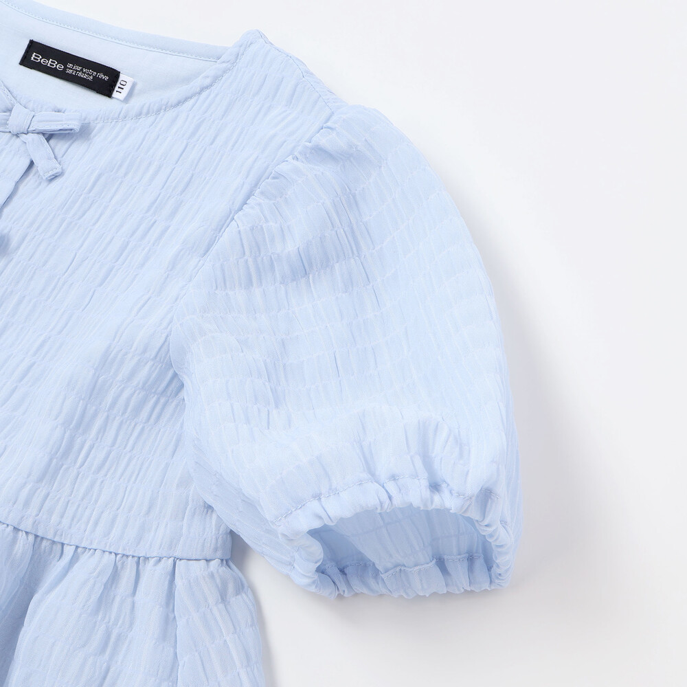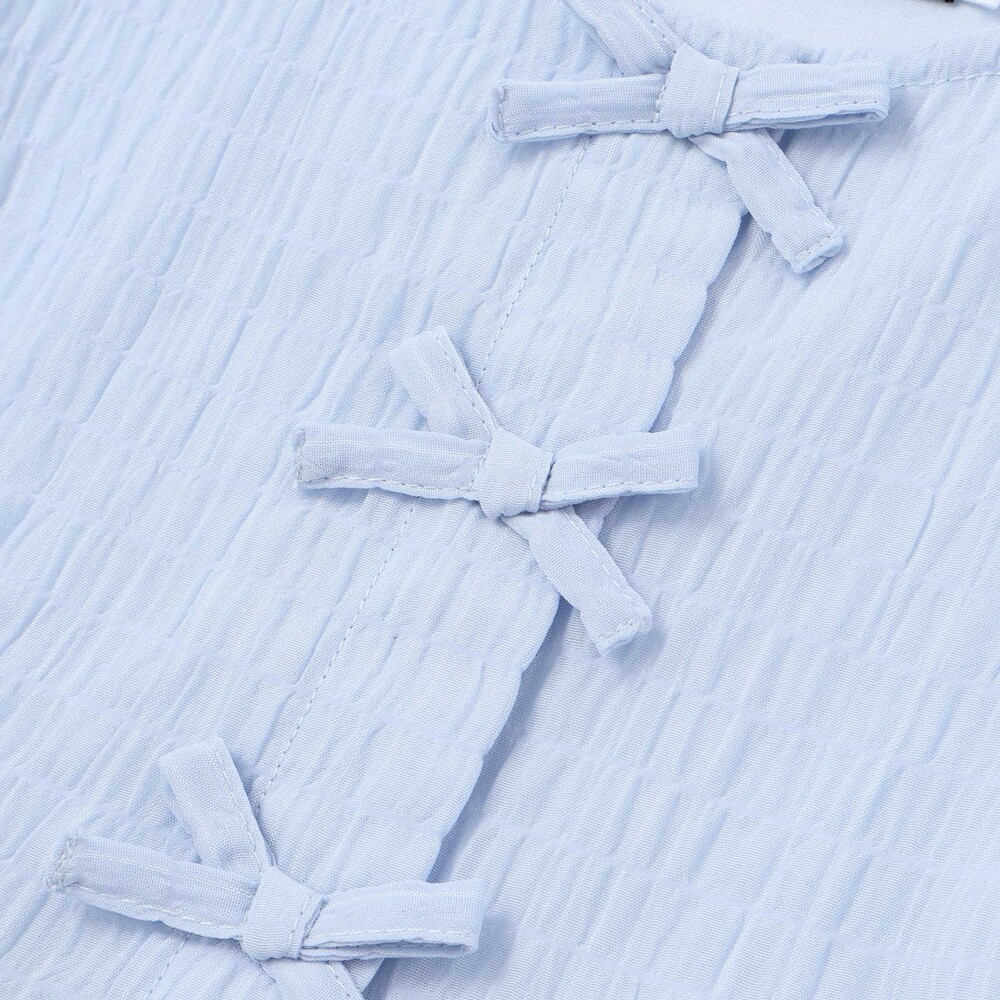 ホワイトはシアー感がかわいいレース生地、ブルーは表面感あるシャーリング生地を使用しています。