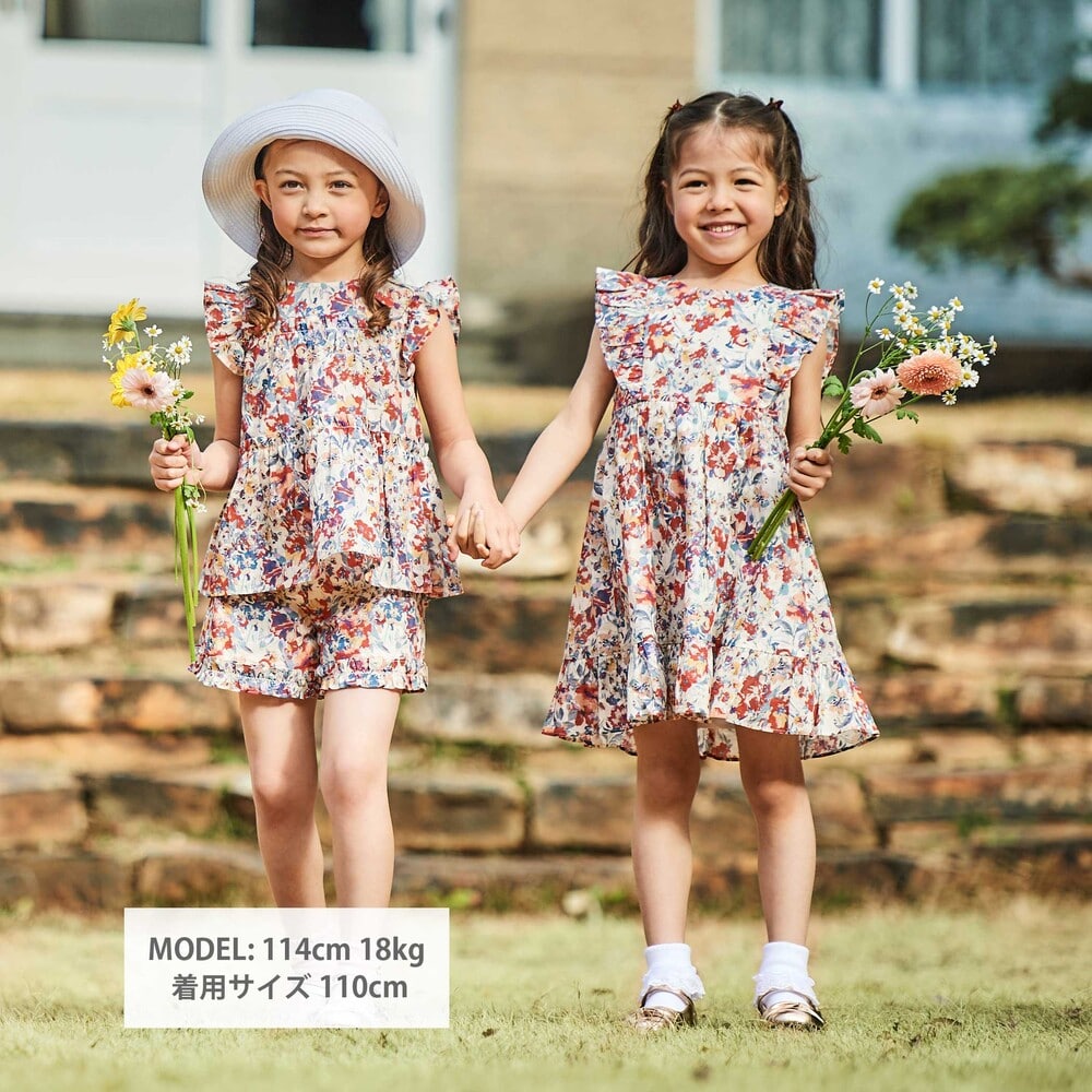 100cm:身幅29.5 着丈38.5 肩幅23.5 袖フリル丈4 110cm:身幅31 着丈41.5 肩幅25 袖フリル丈4.5 120cm:身幅33 着丈45 肩幅26.5 袖フリル丈5 130cm:身幅35 着丈48.5 肩幅28 袖フリル丈5 140cm:身幅37 着丈52.5 肩幅30 袖フリル丈5.5 |