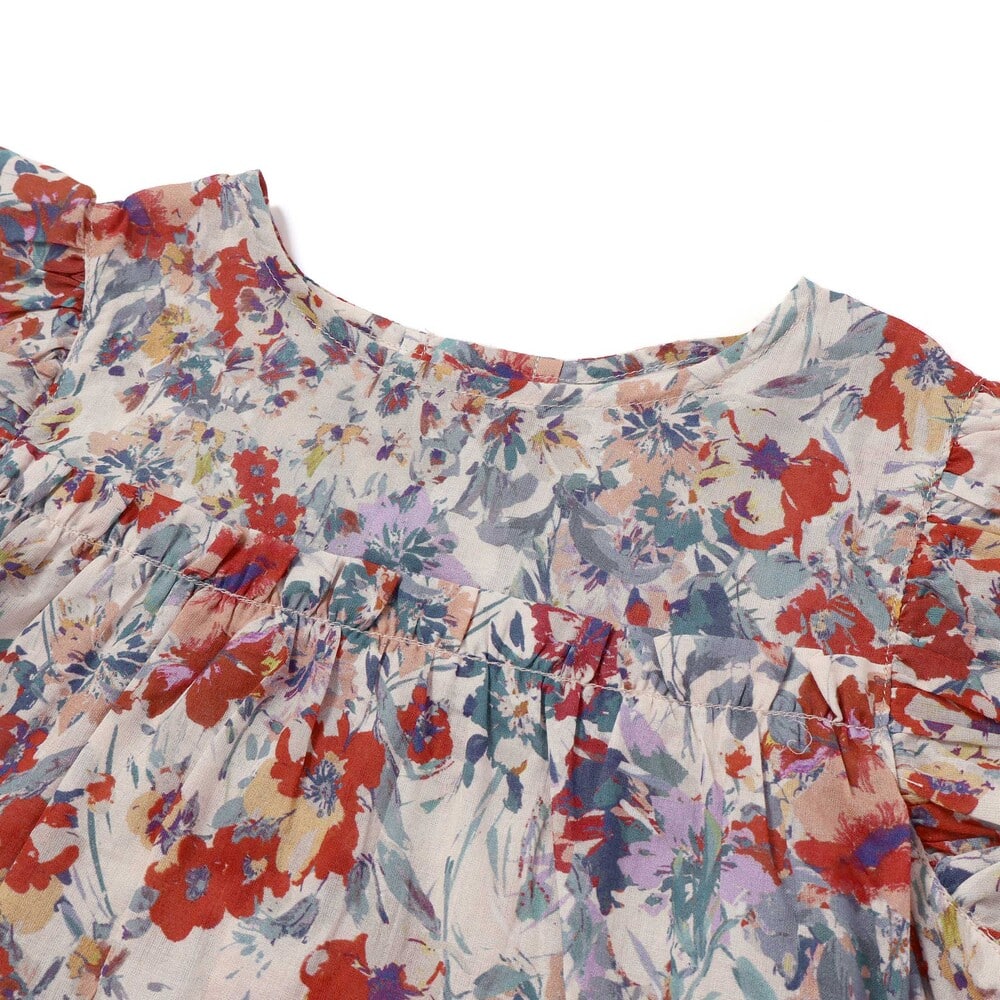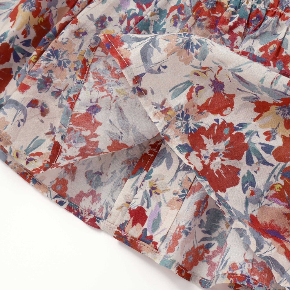 軽さのあるコットン100%のローン生地に花柄がプリントされています。