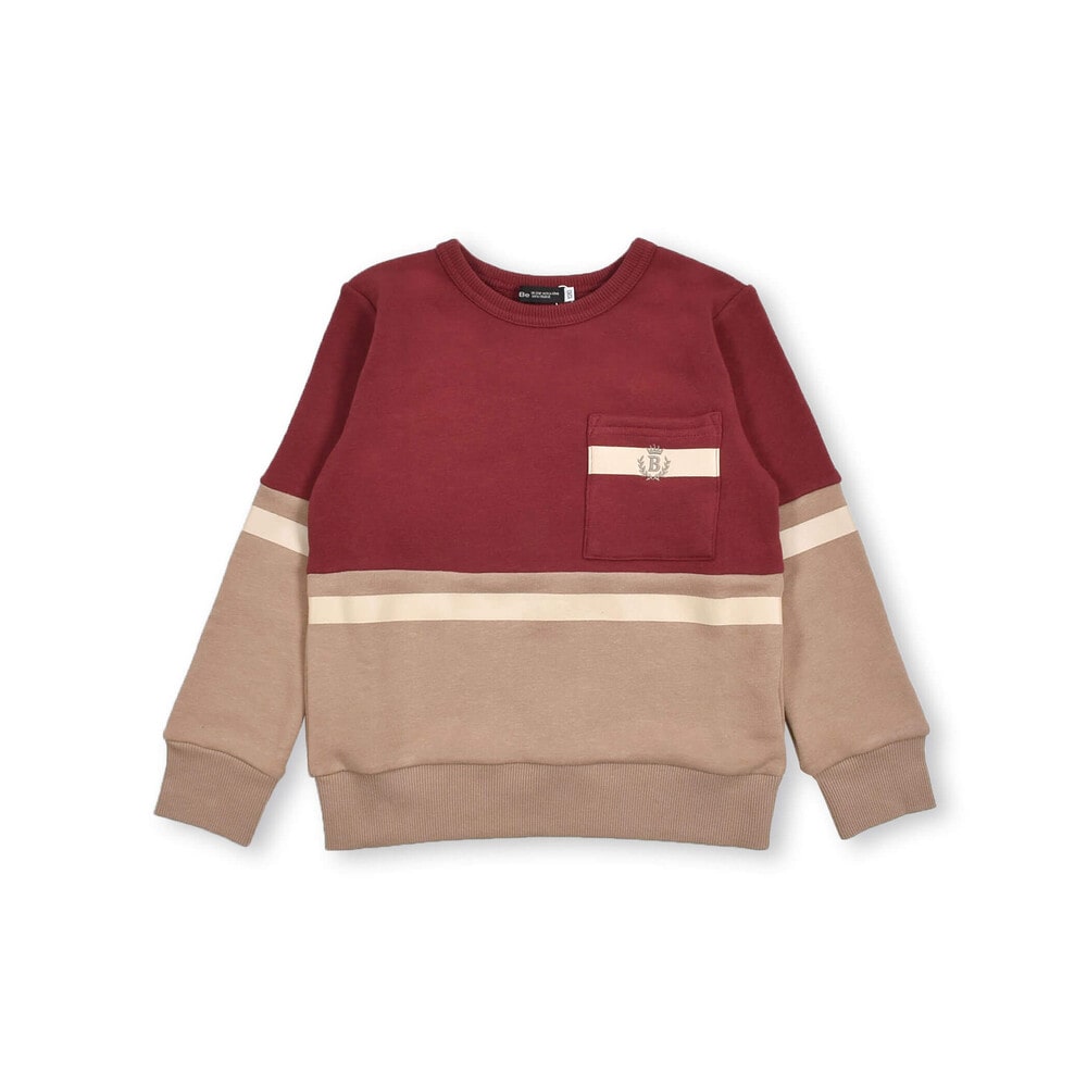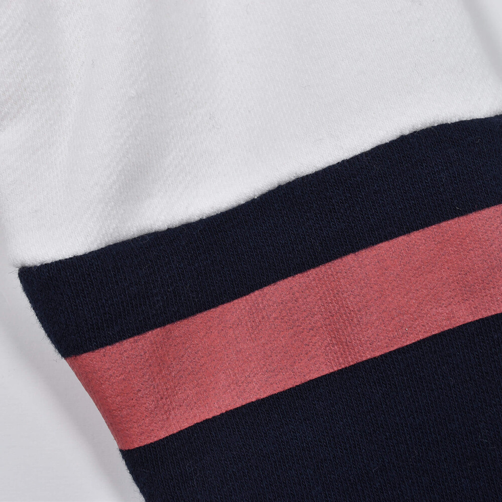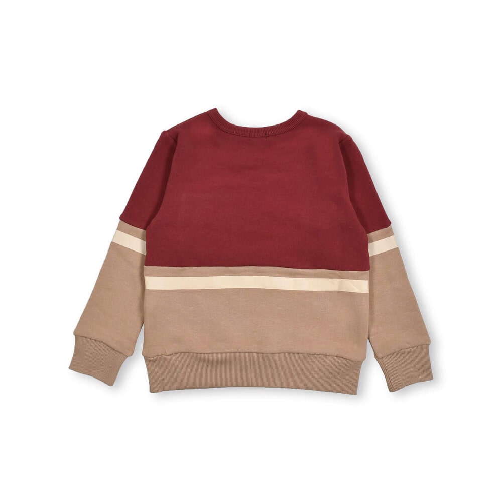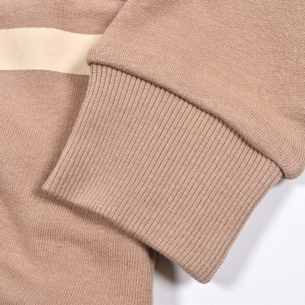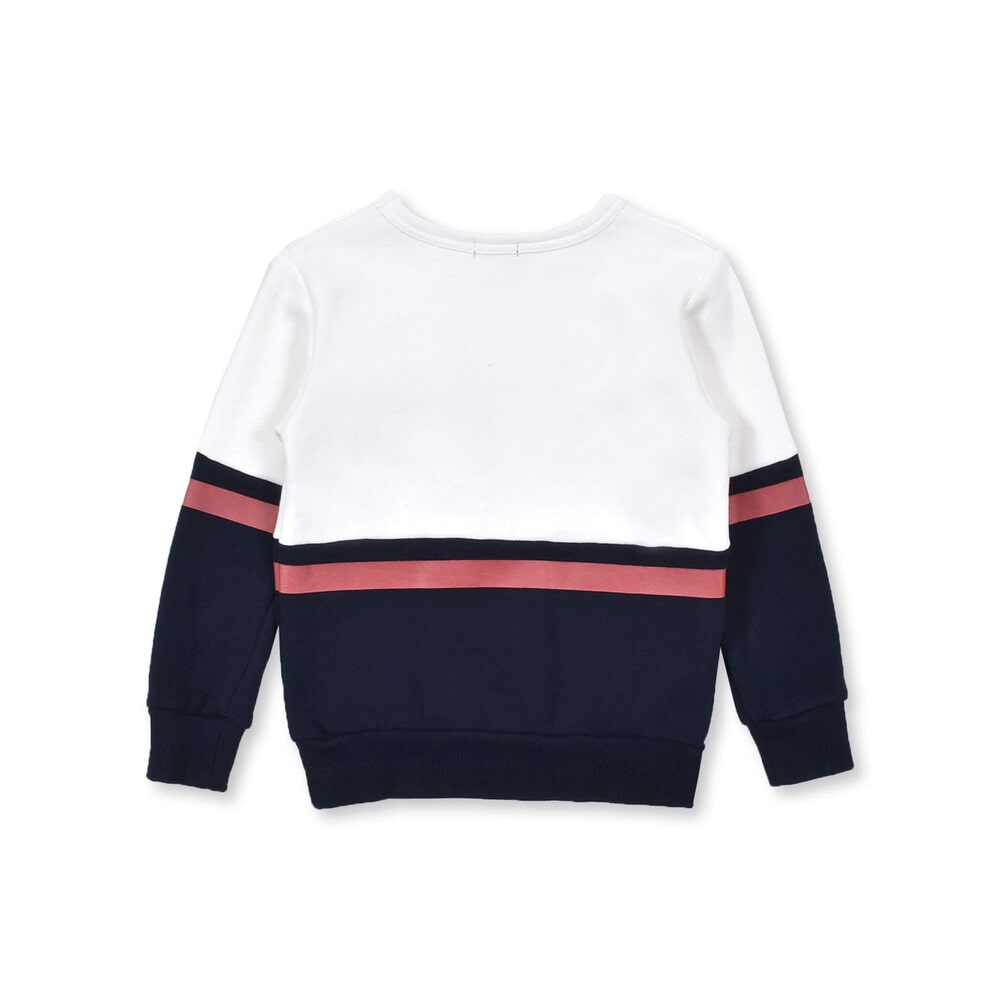 身頃や袖、ポケットにラインプリントの入ったバイカラーデザインのトレーナー。