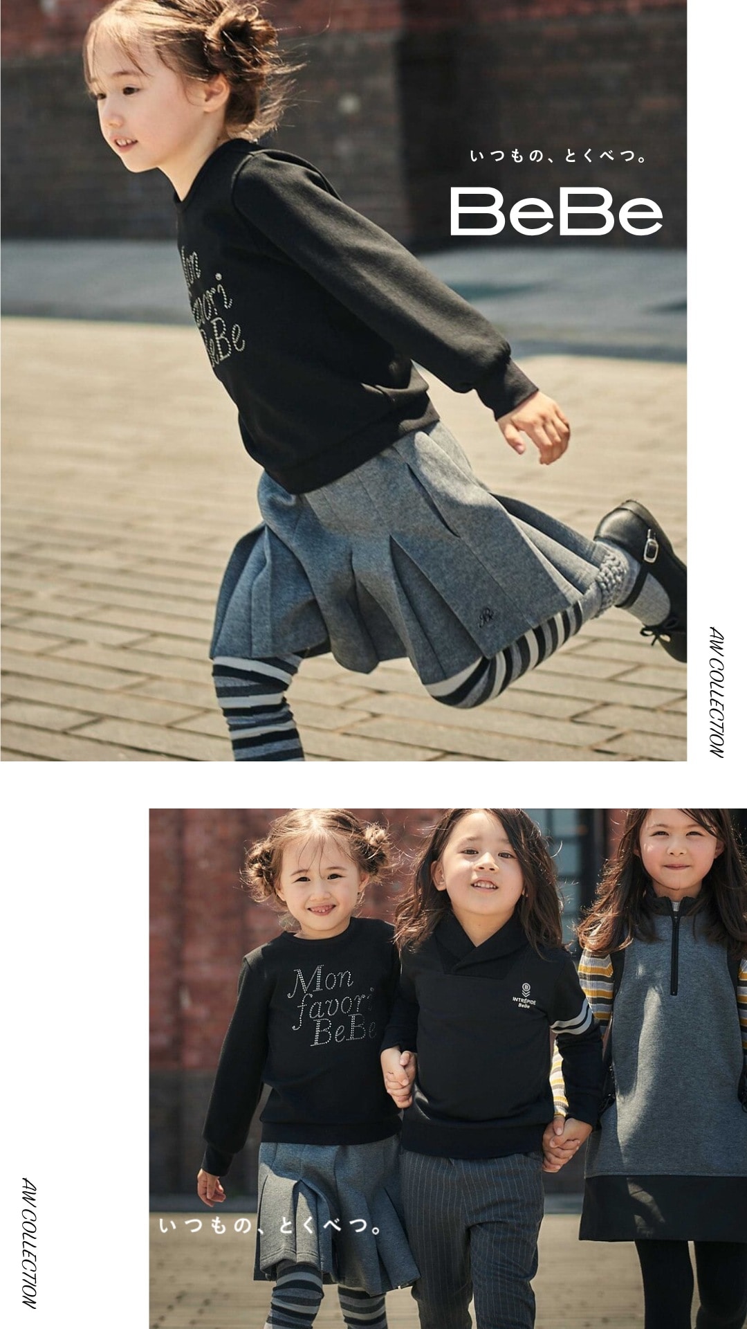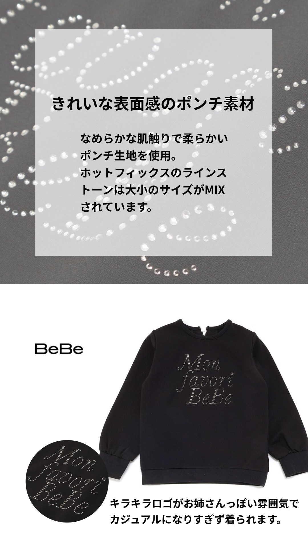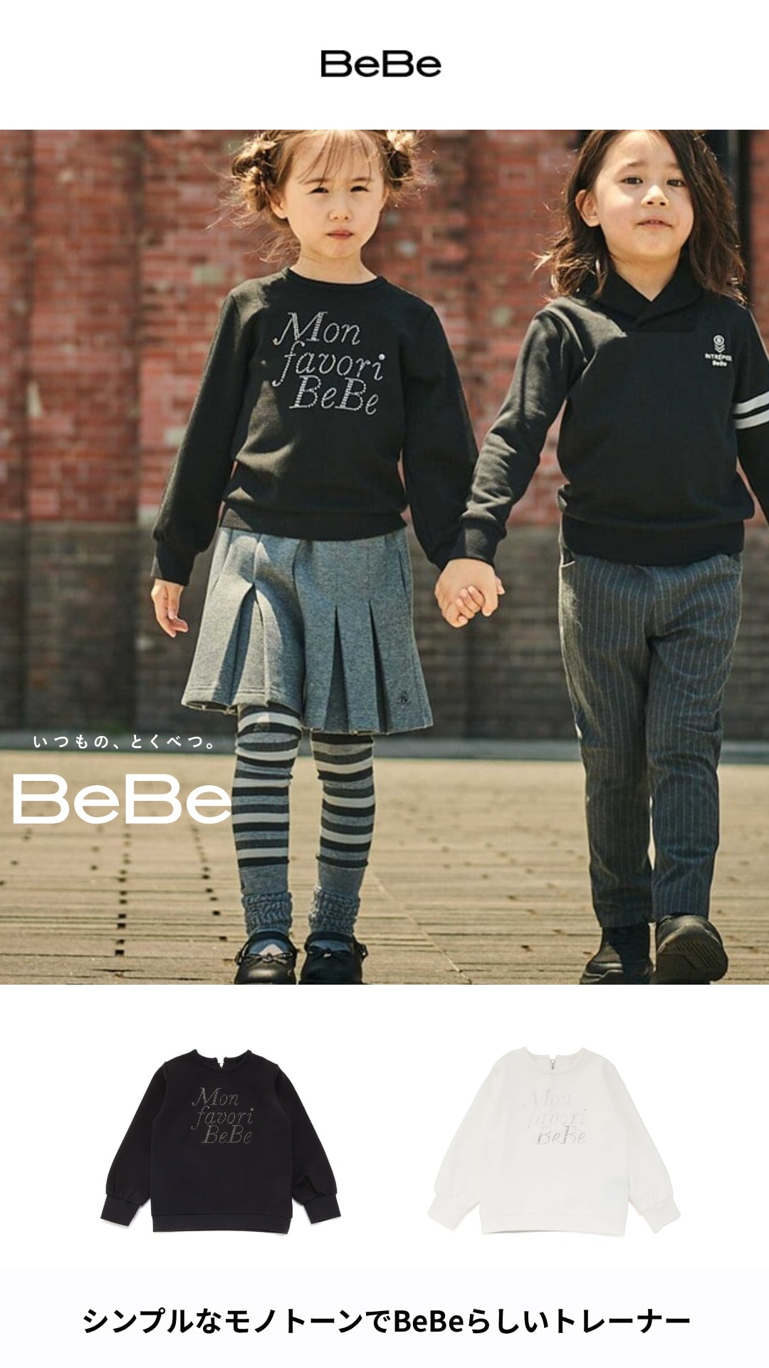 シンプルなモノトーンでBeBeらしくちょっと背伸びしたコーディネートを楽しめます。