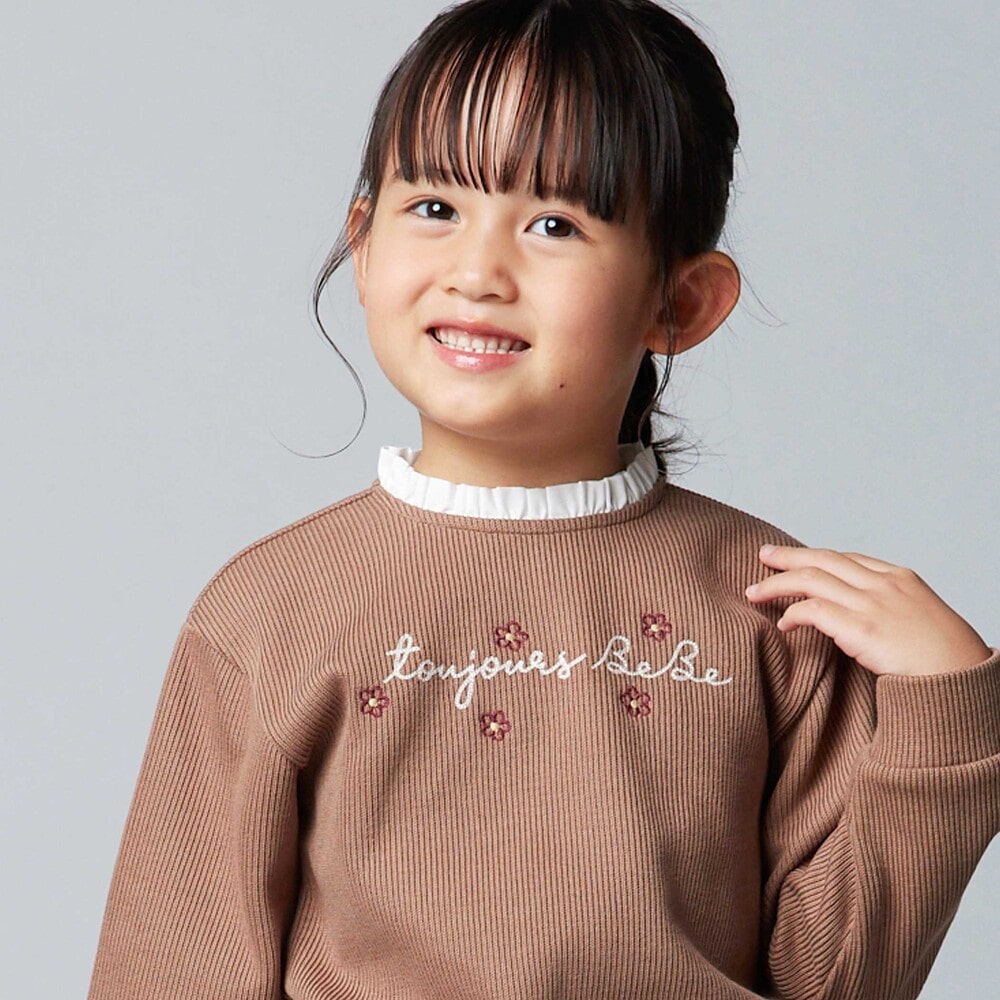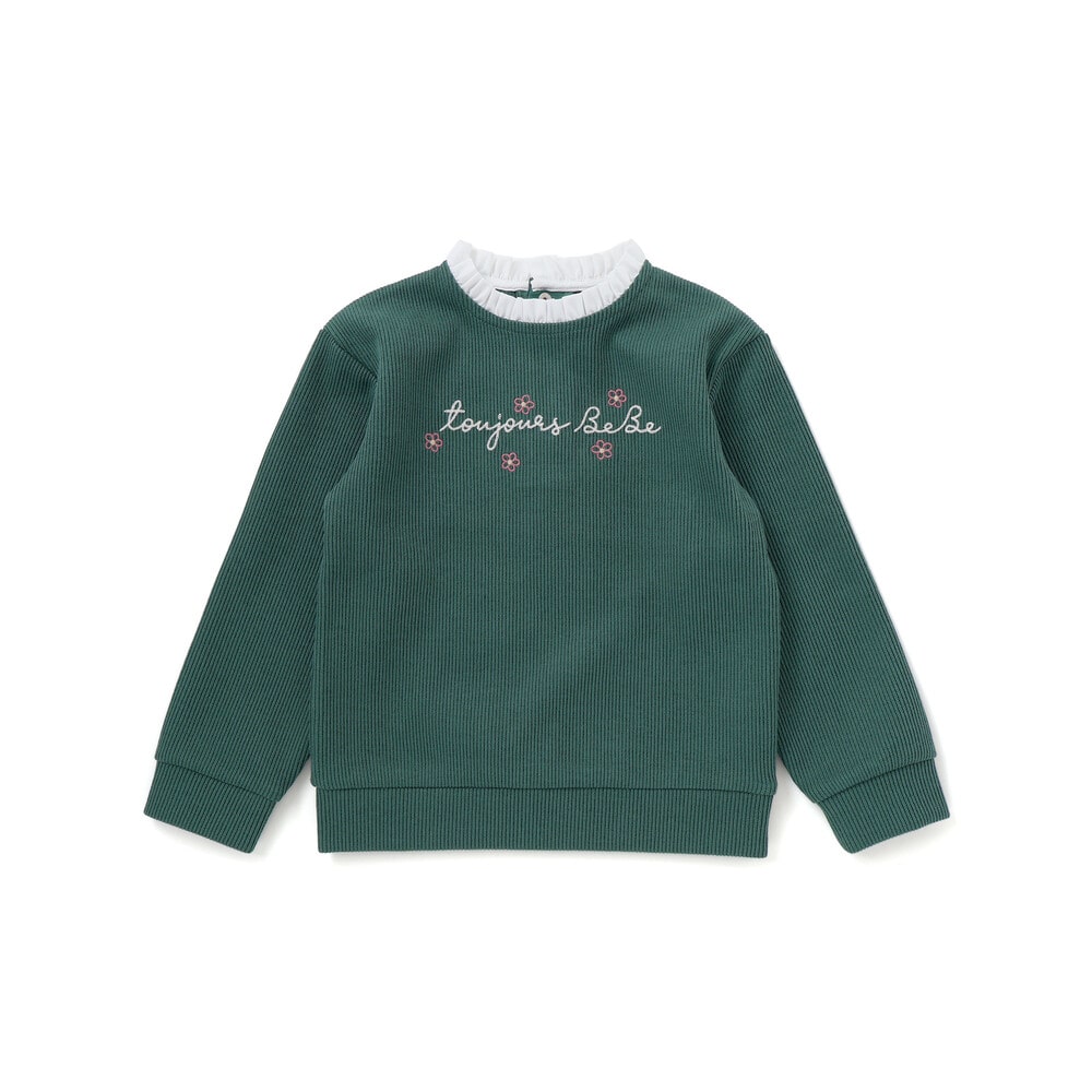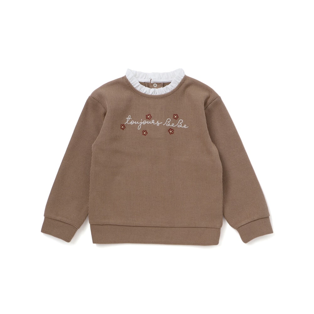 ブラウスを重ねたような首ぐりのフリルがおしゃれなトレーナー。
