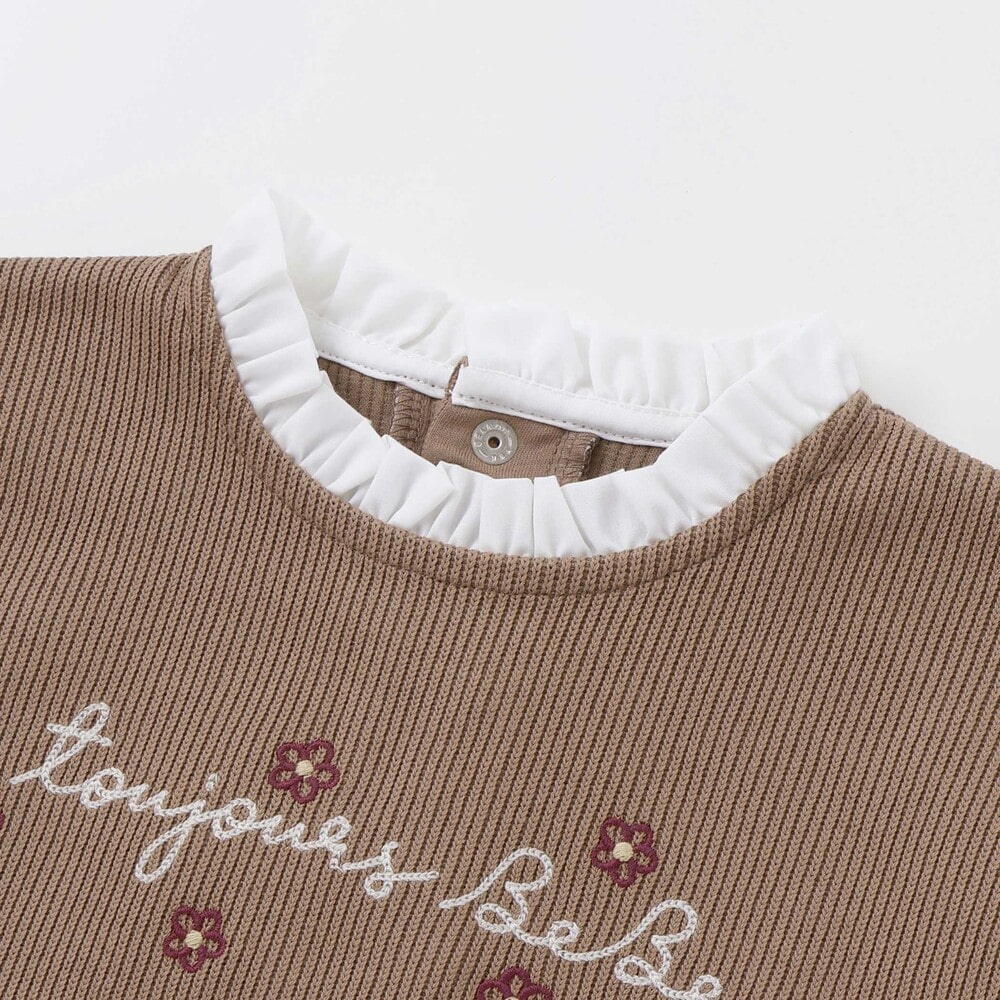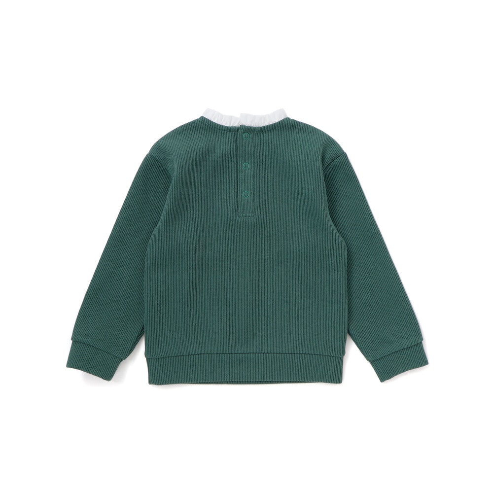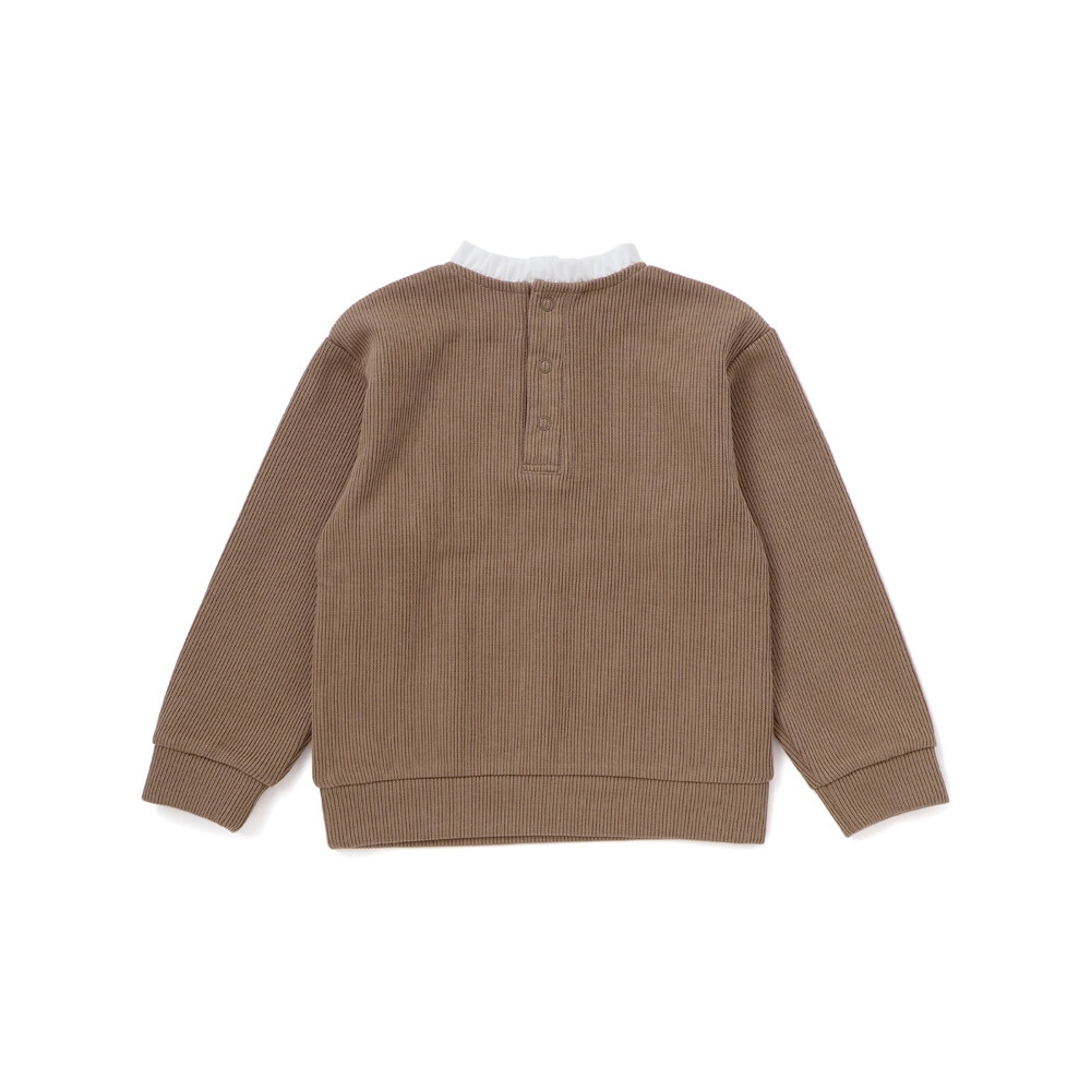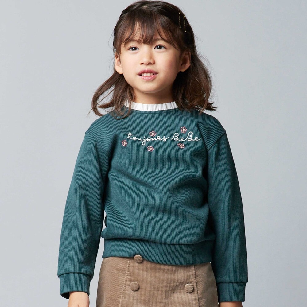ブラウスを重ねたような首ぐりのフリルがおしゃれなトレーナー。