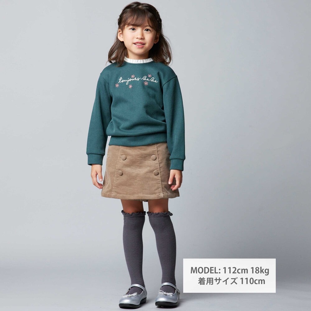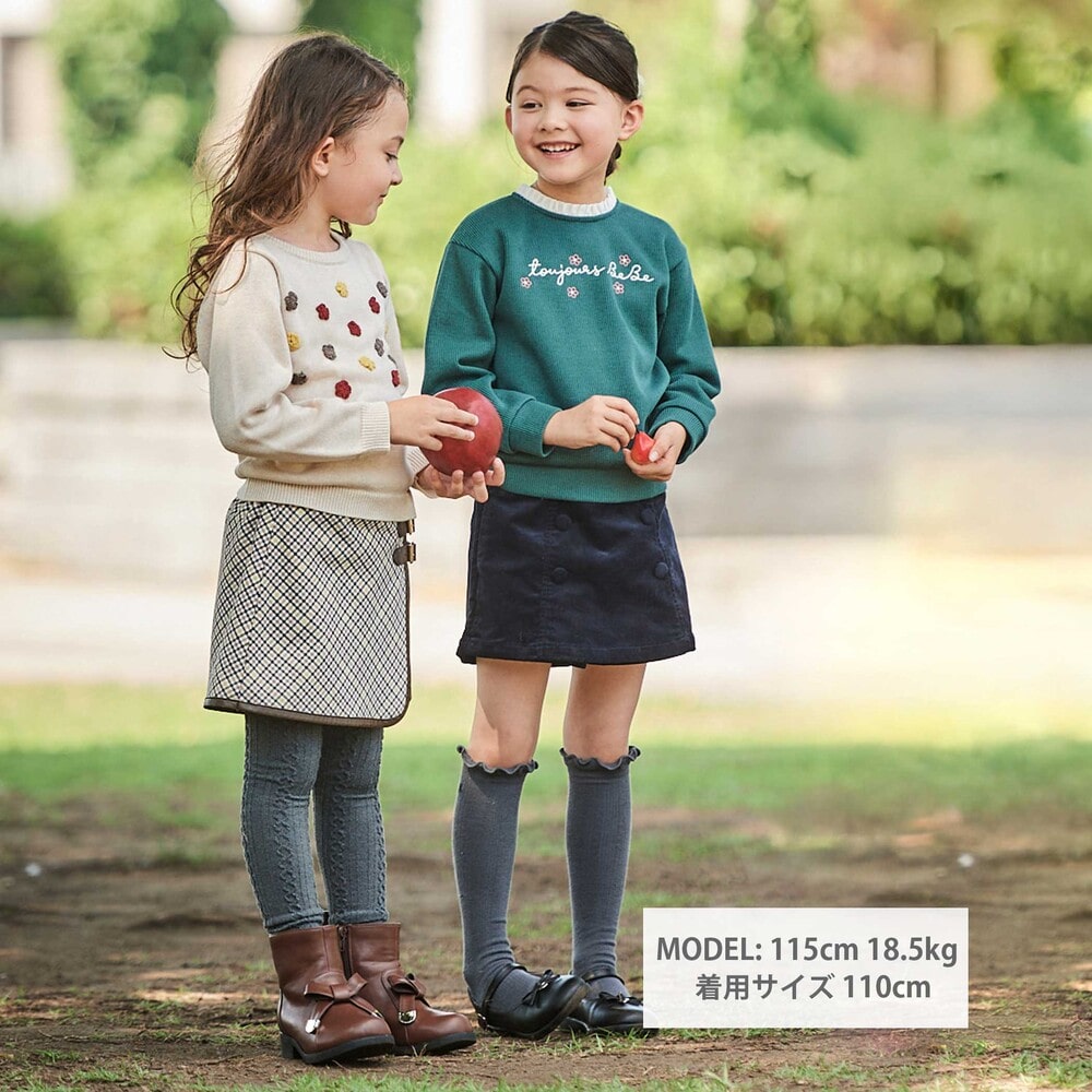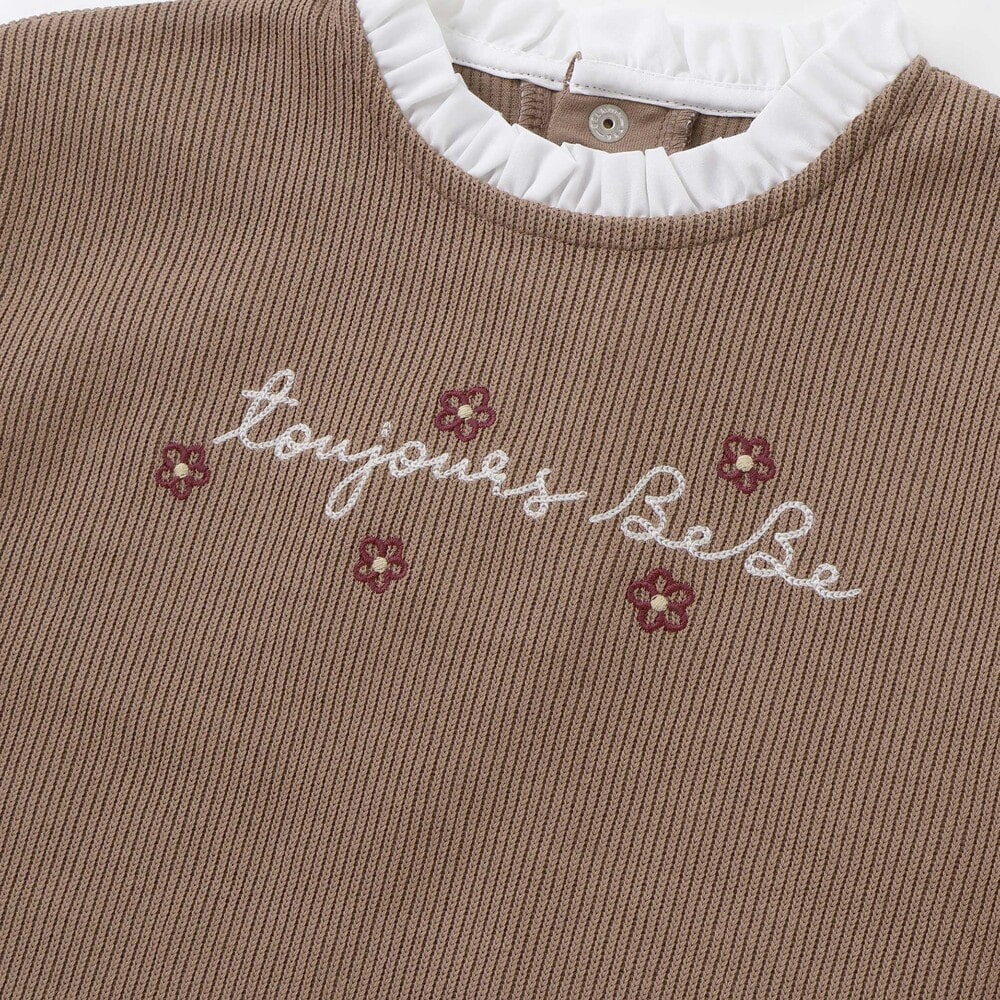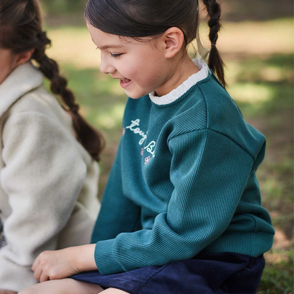 手書き風のロゴと小花の刺しゅうは温もりのあるカラーリングで柔らかい雰囲気に。