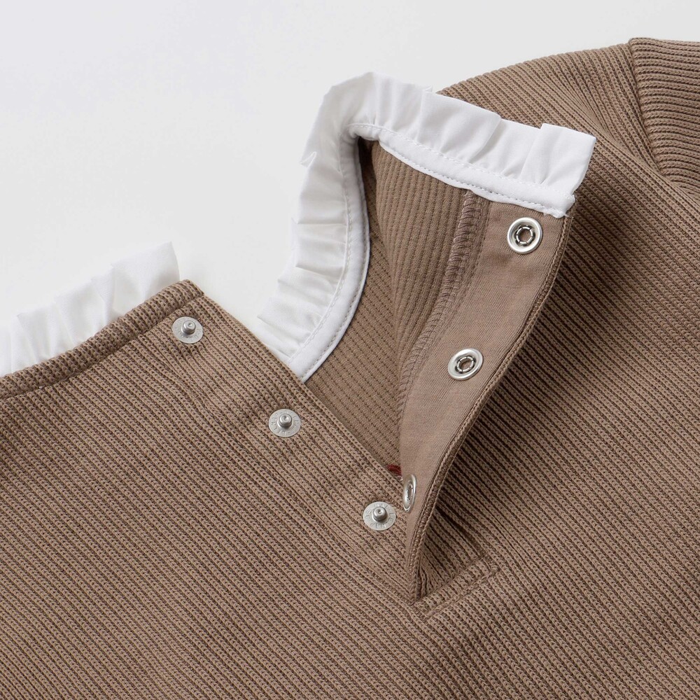 首ぐりのフリルはブロード生地でハリのあるフリルになっています。