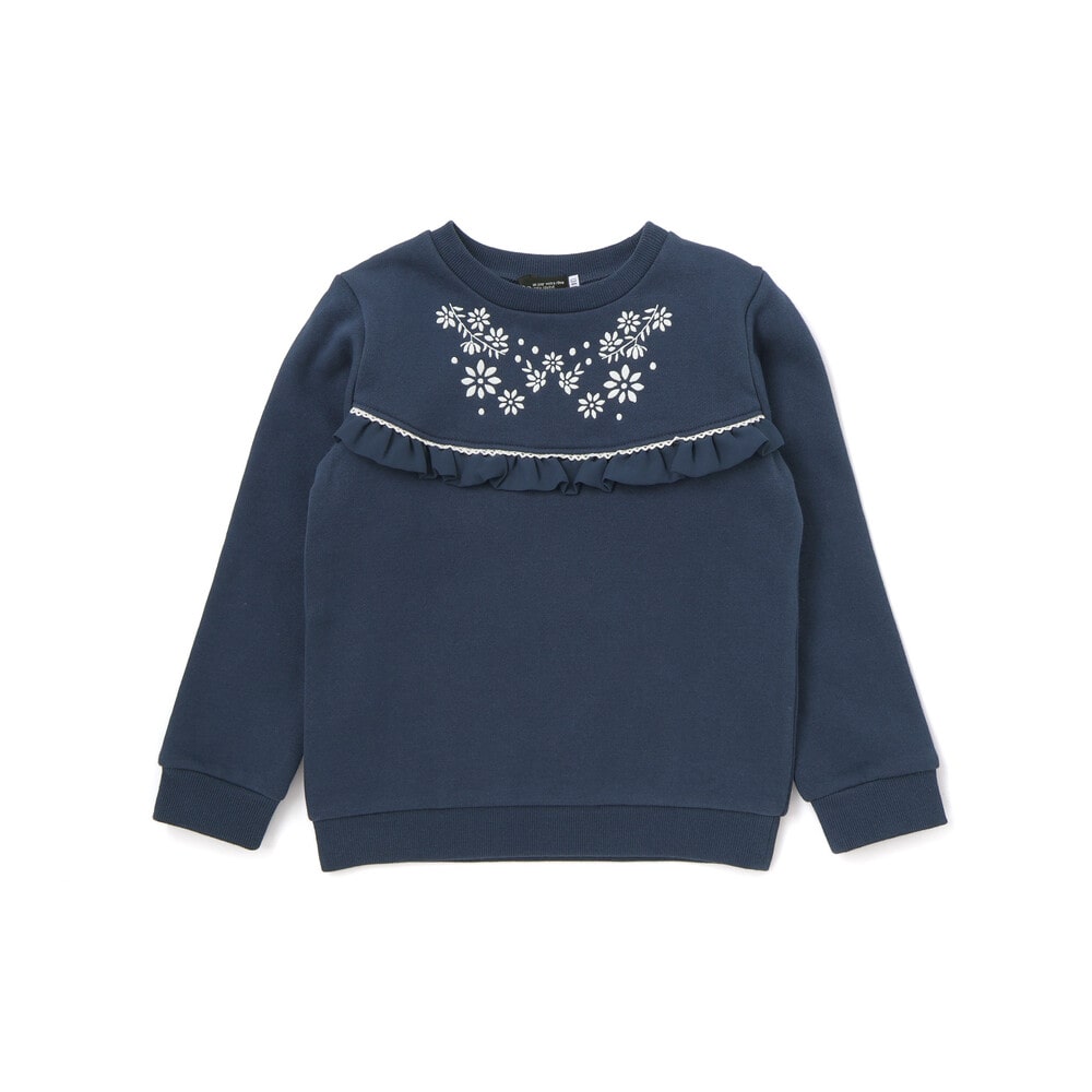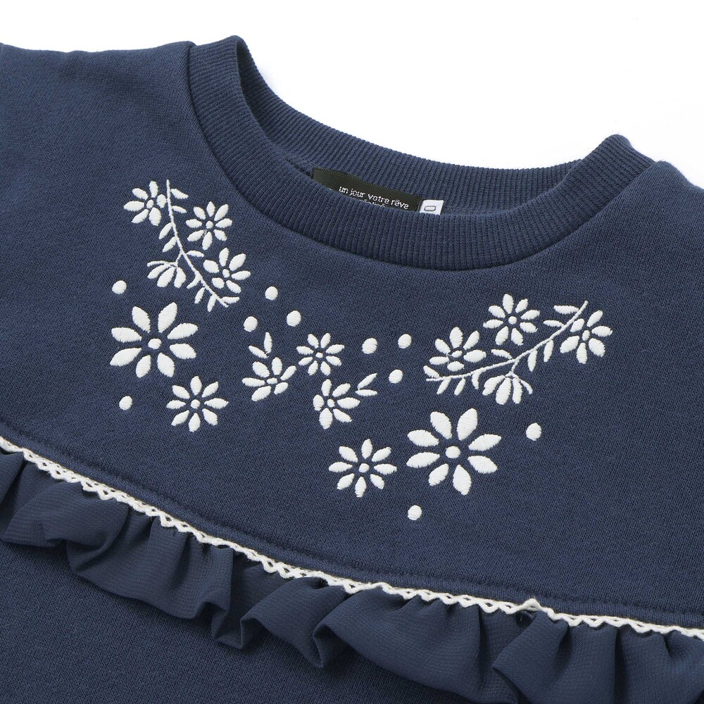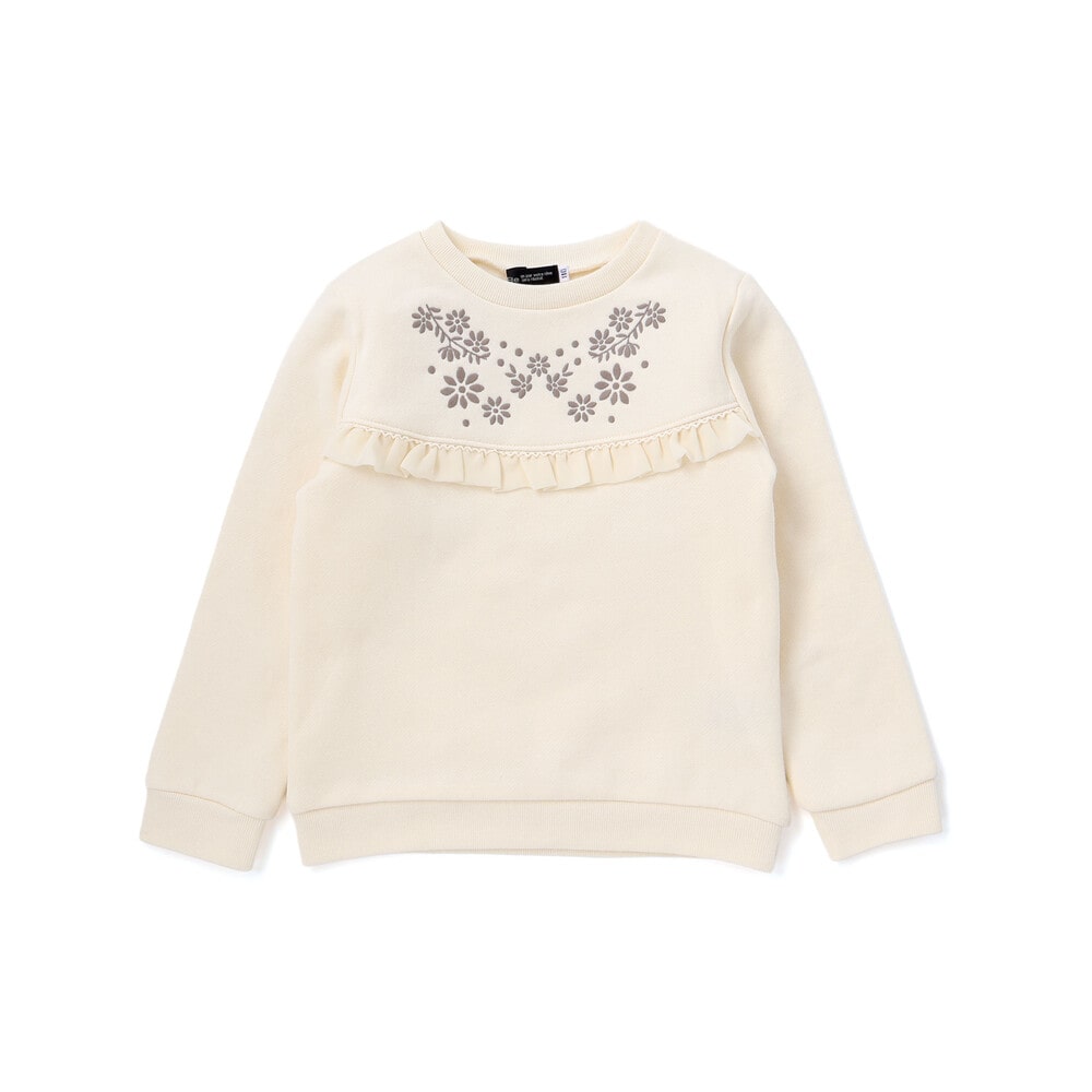 ボリューム感のあるレトロなフラワー刺しゅうがガーリーな裏起毛トレーナー。