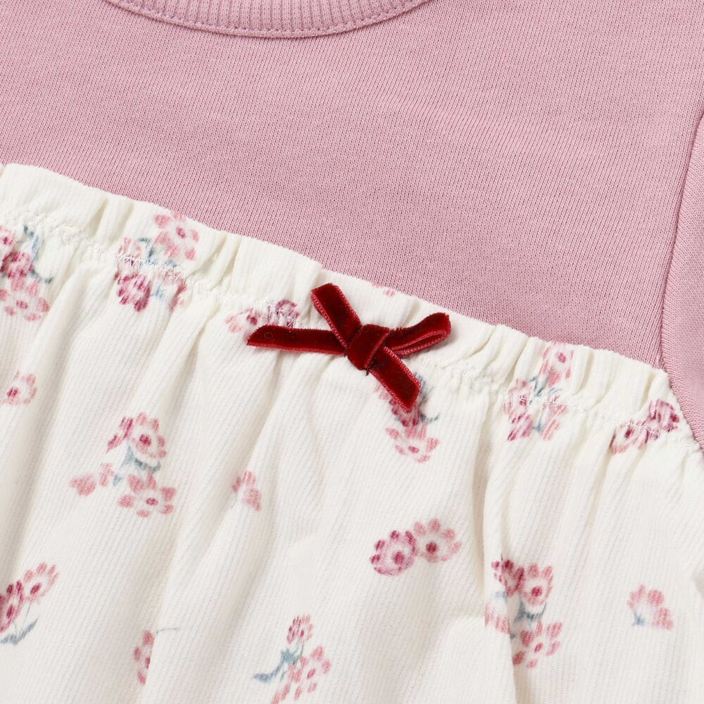 おそろい生地のキュロット(1110-79032)とのセットアップコーデだとノスタルジックで可愛い印象に。