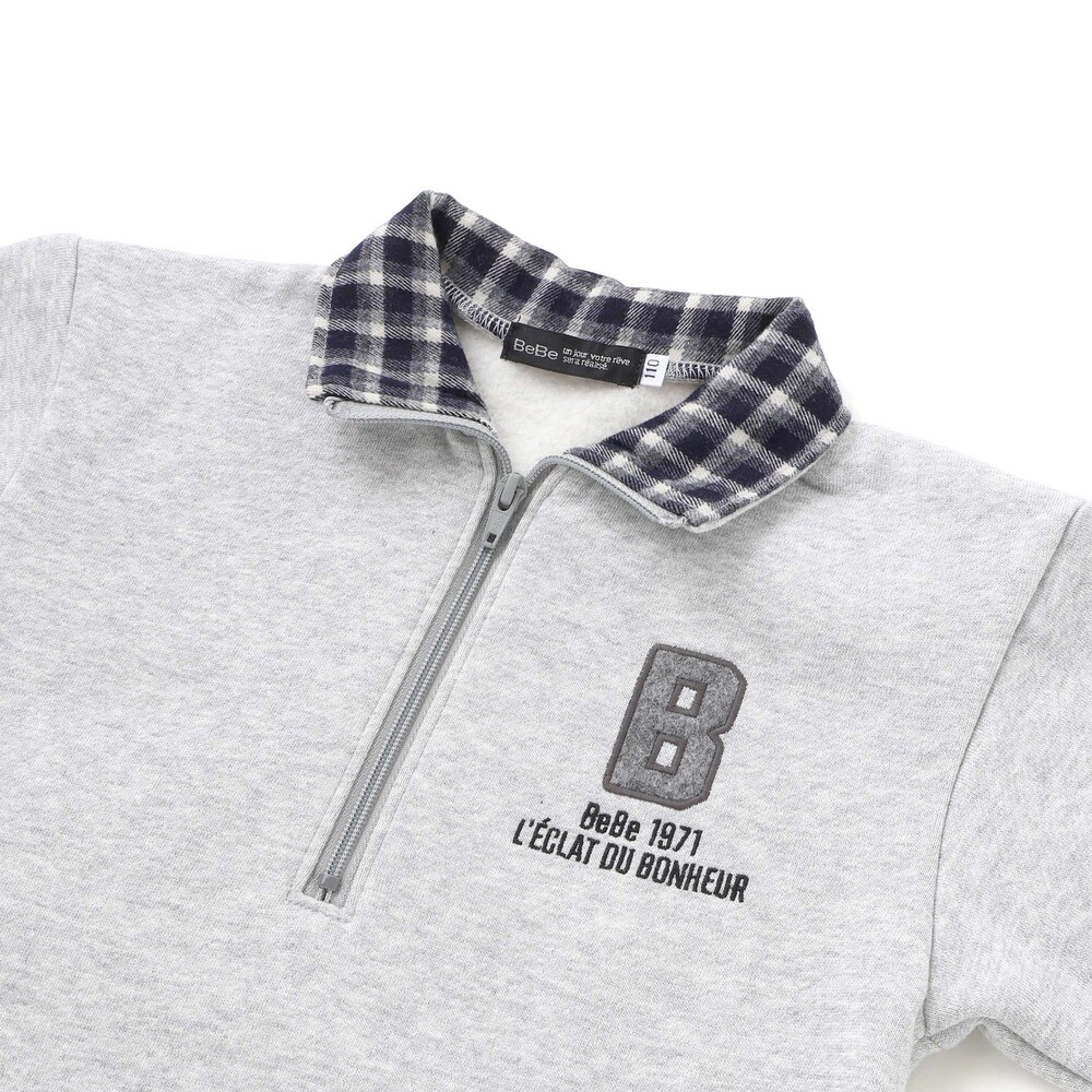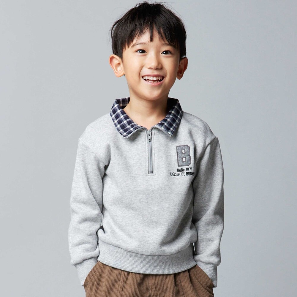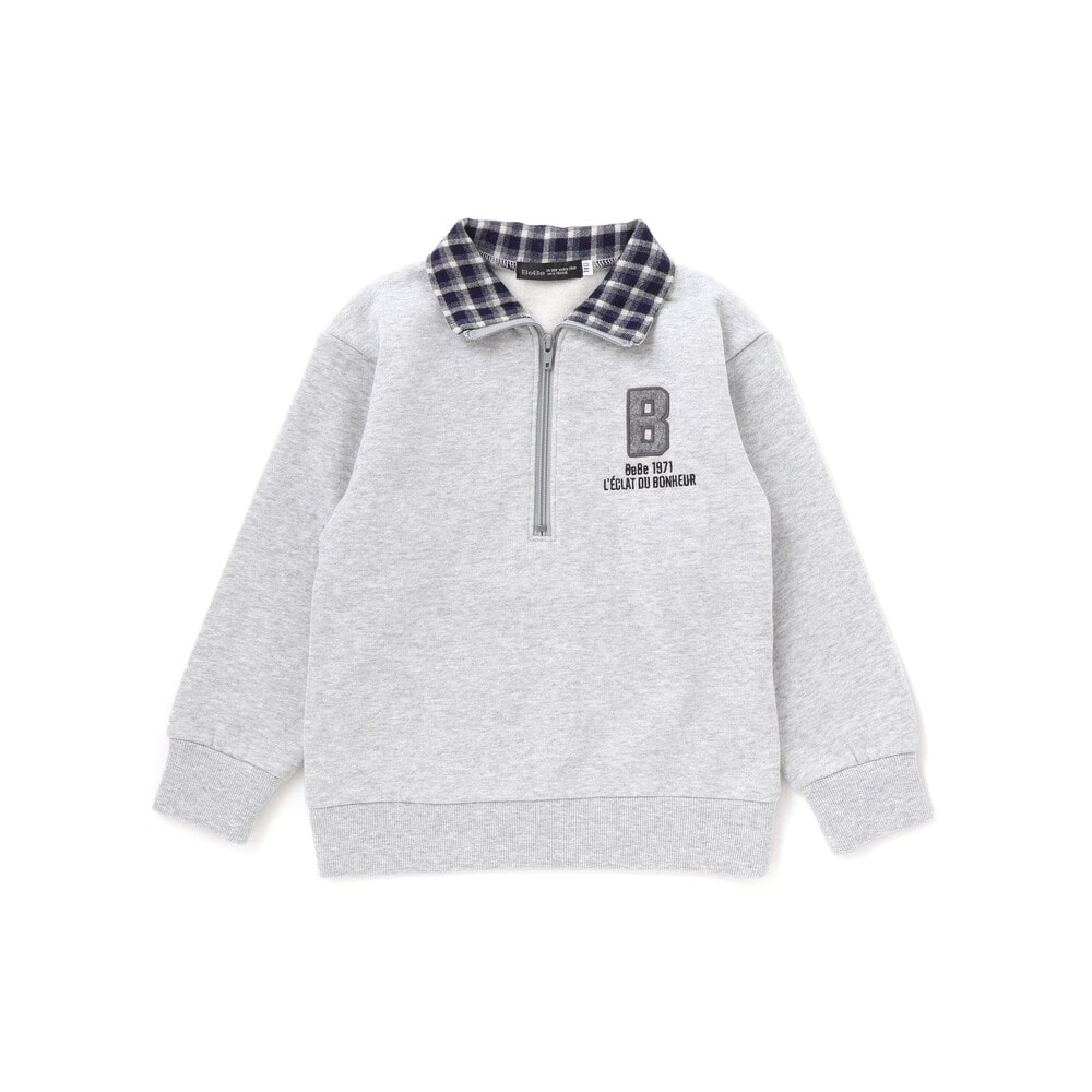 襟の内側をネルチェックの生地に切り替えたトレーナー。