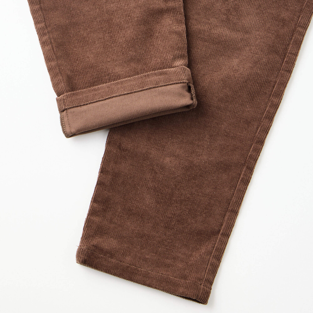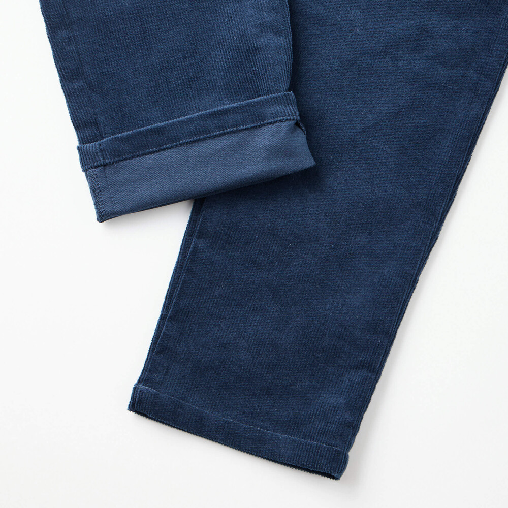 ストレッチの効いたコーデュロイを使用したロングパンツ。