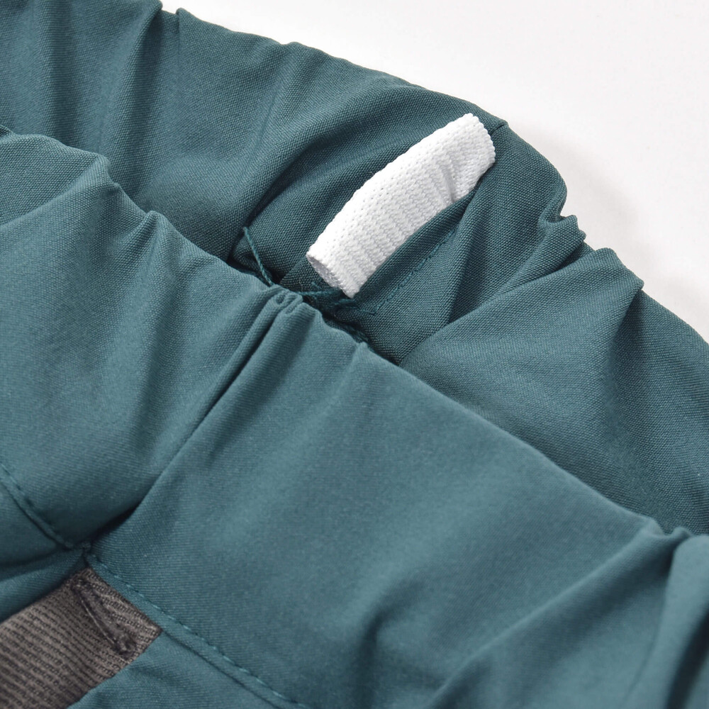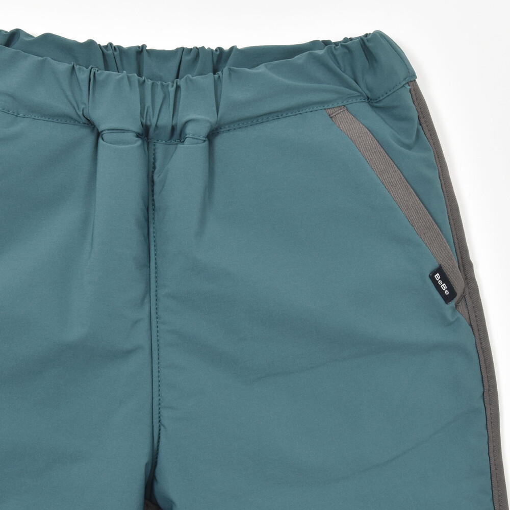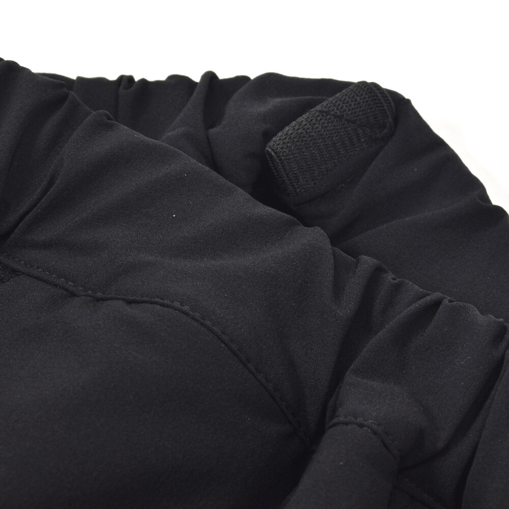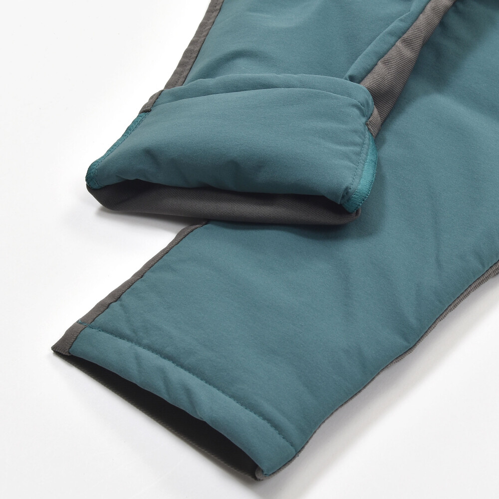 薄手のナイロン生地の間に綿のシートを入れることで冬の寒い時期に嬉しい防寒ボトムに。