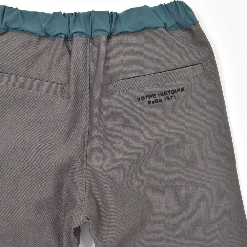 後ろ側はストレッチの効いたツイルの生地に切り替えられたロングパンツ。
