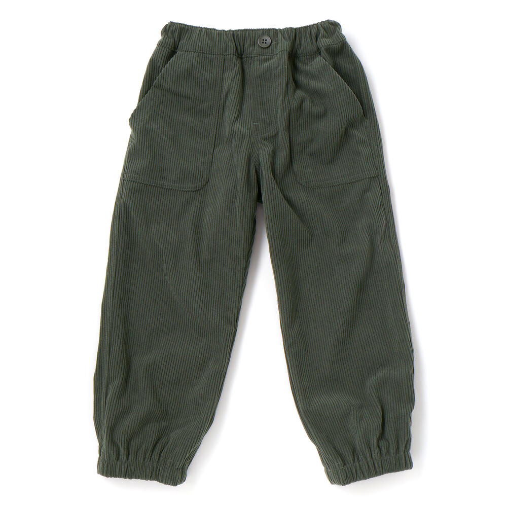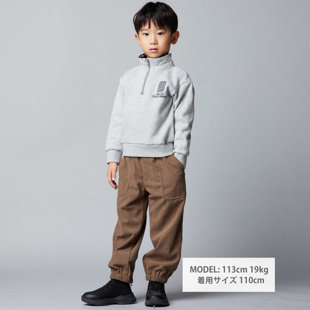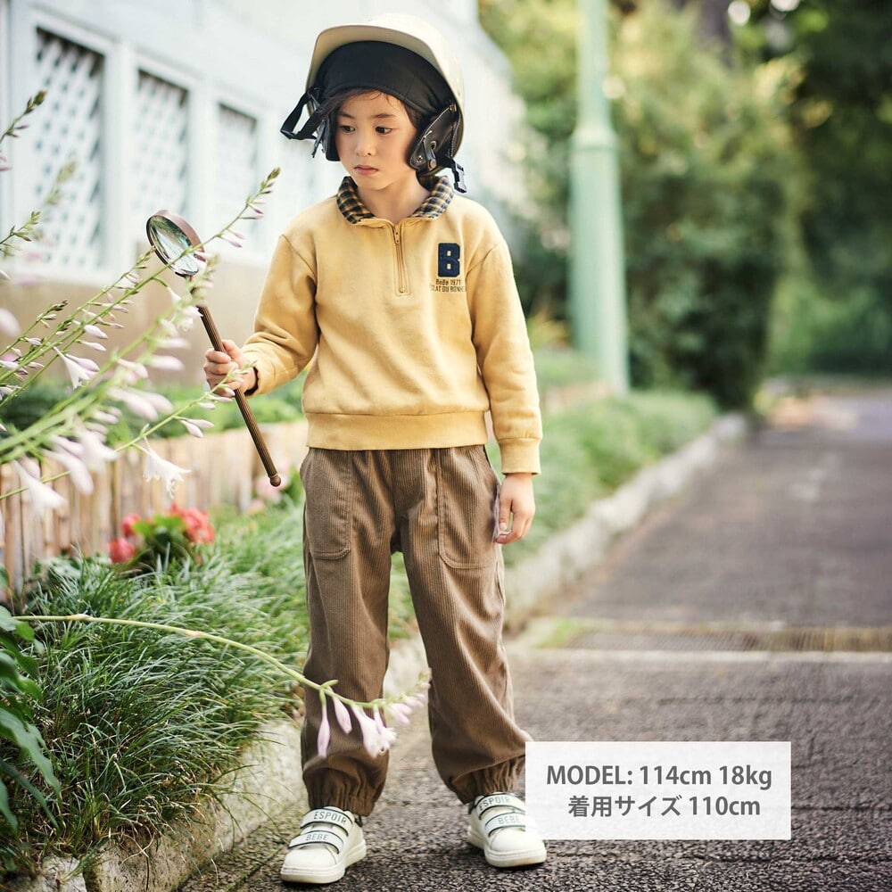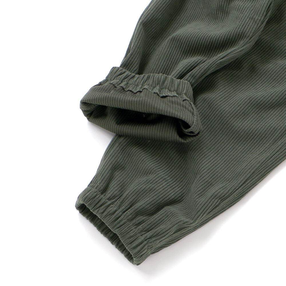 コーデュロイの表面感とカットソーの伸縮の良さを兼ね備えたニットコール生地を使用。