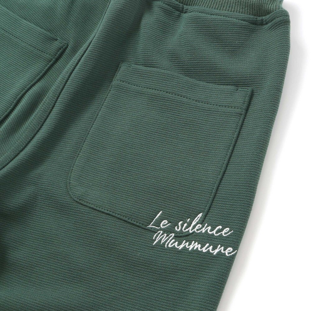 後ろポケットに入った手書き風のロゴ刺しゅうがかっこいいデザイン。