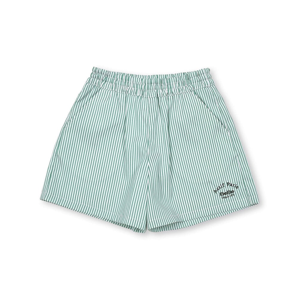 すっきりしたシルエットがアクティブな印象のストライプのショートパンツ。