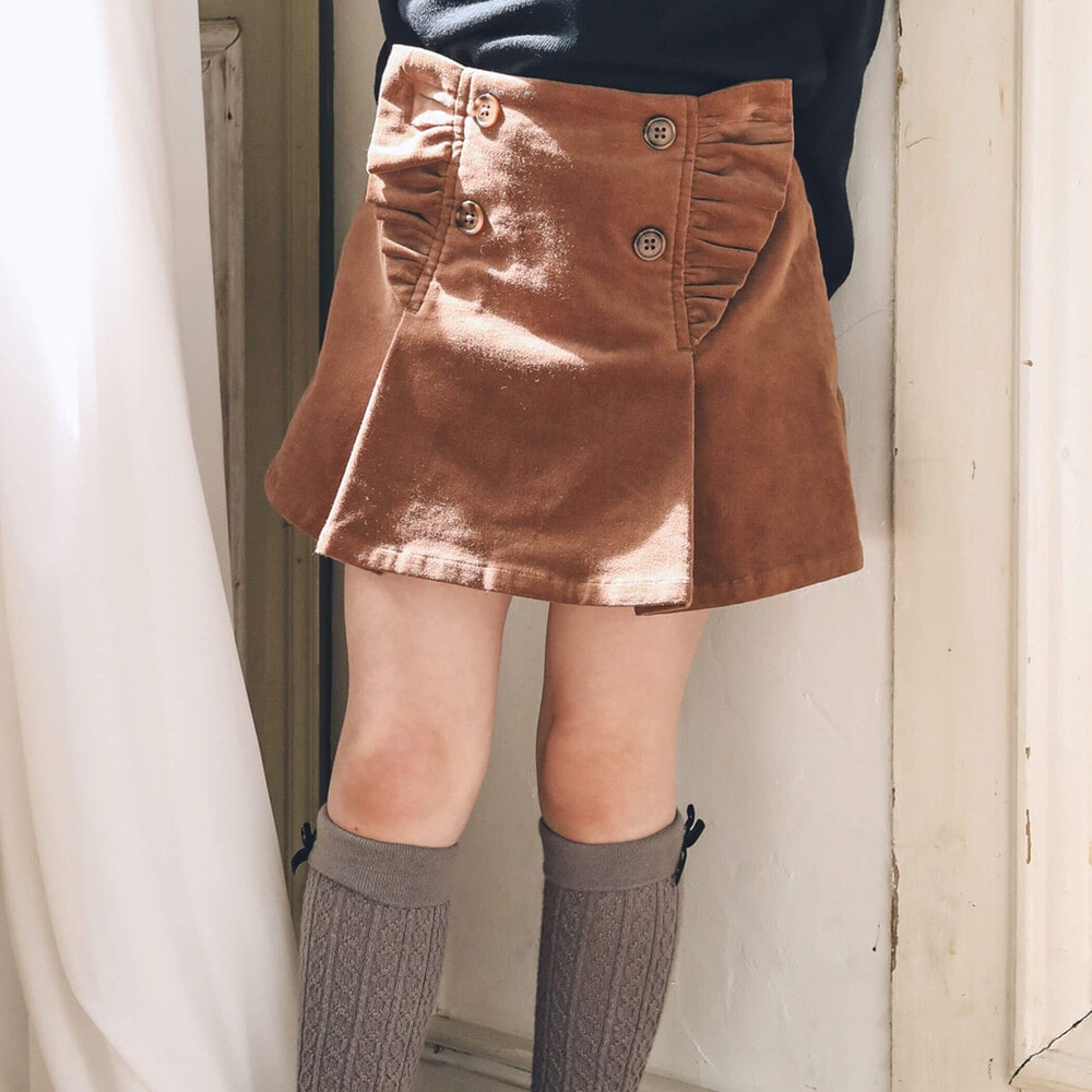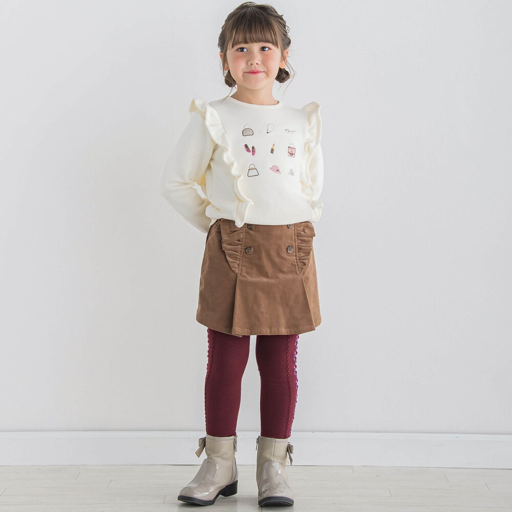 前からの見た目はスカートでも実はショートパンツという元気な女の子にもうれしいデザイン。