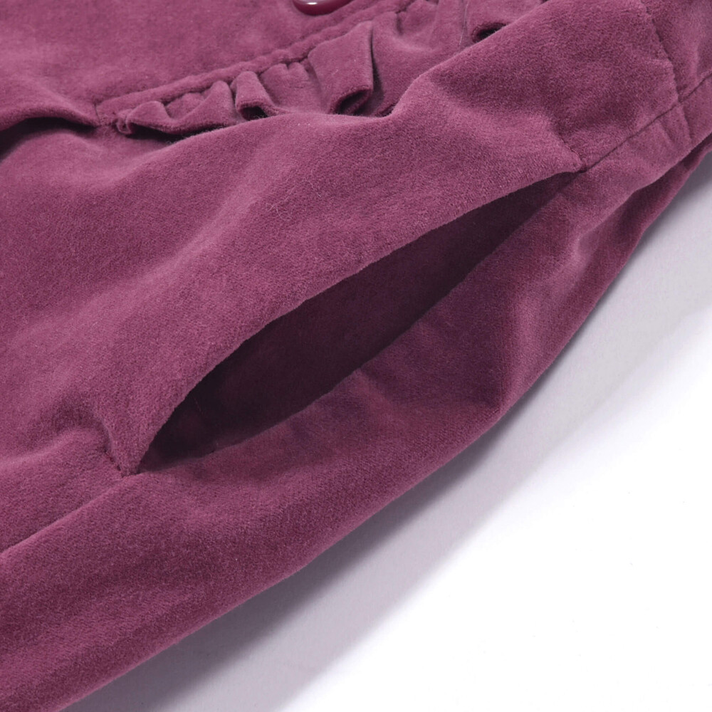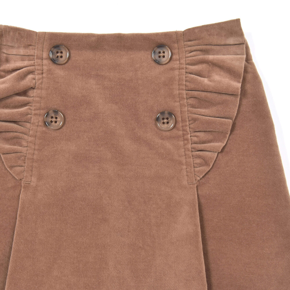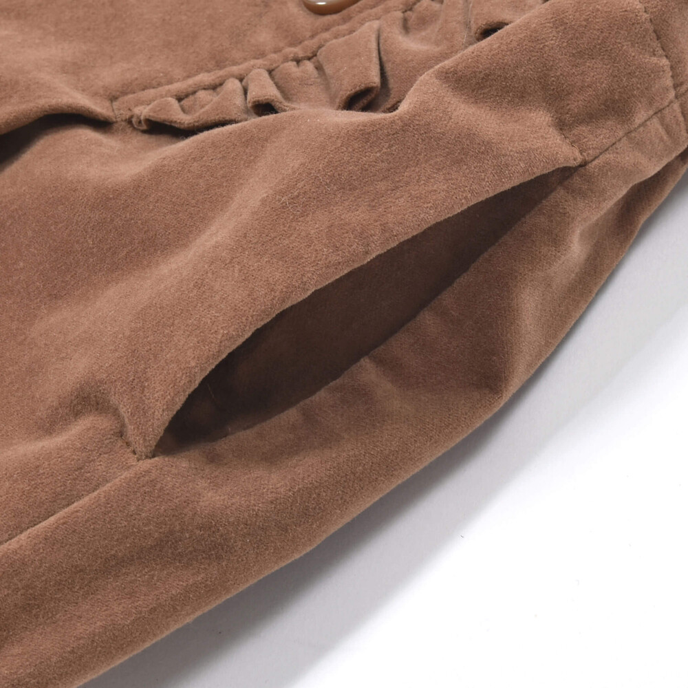 ウエストのフリルと2列に並んだボタンのデザインがポイント。