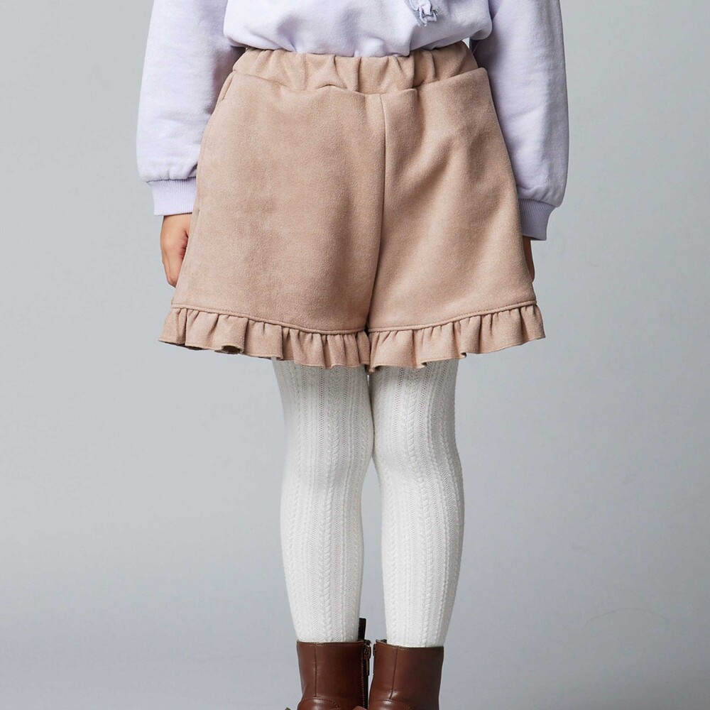 マットな起毛感がシーズンムードのあるスウェード調の生地のショートパンツ。